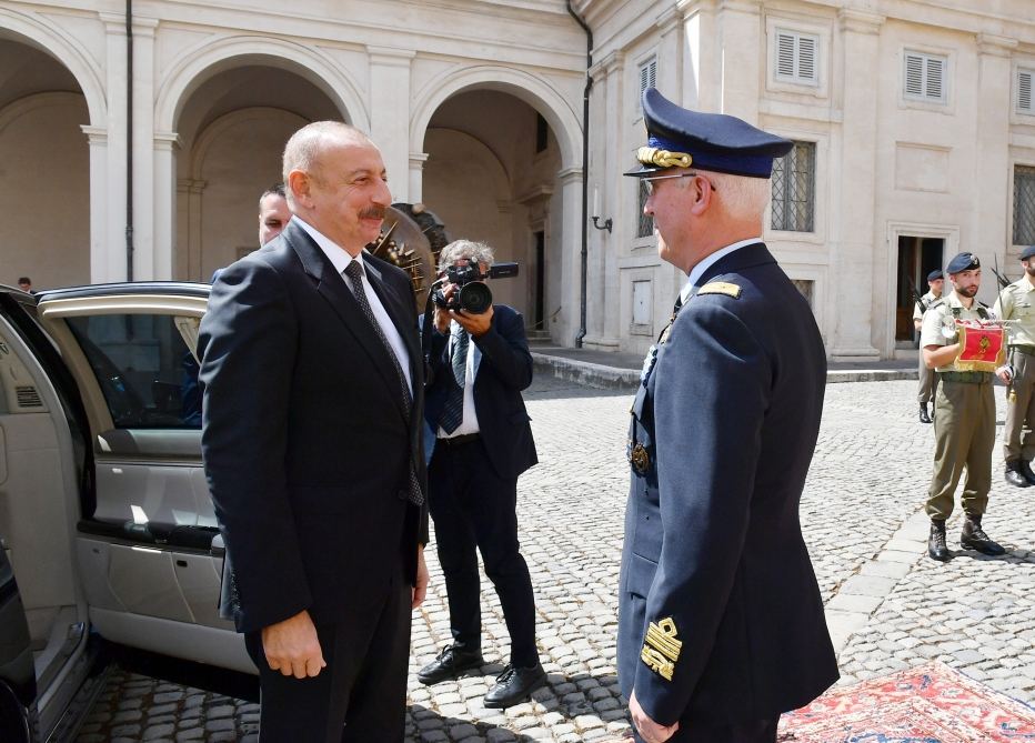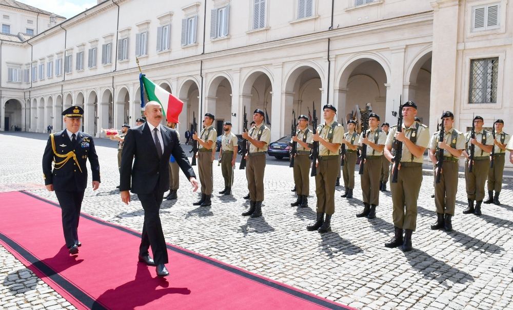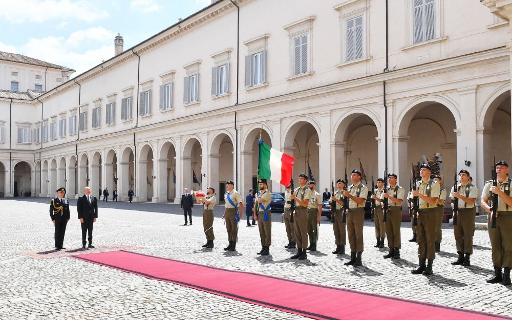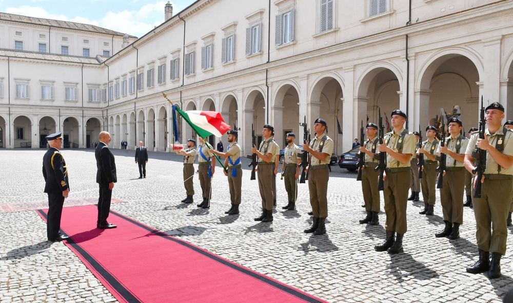 AZƏRTAC xəbər verir ki, Romanın Kuirinale Sarayında Prezident İlham Əliyevin şərəfinə fəxri qarovul dəstəsi düzülmüşdü.