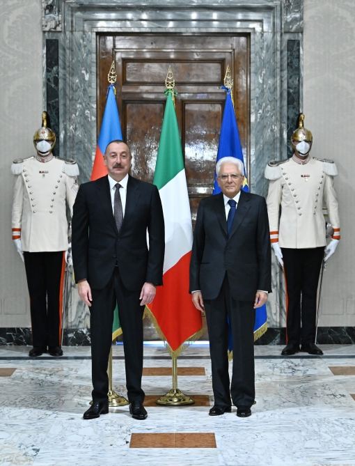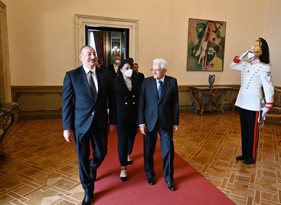 Əlaqələrimizin strateji əhəmiyyətindən xəbər verən 2020-ci ildəki səfərdən sonra Sizi burada Kuirinale Sarayında yenidən qəbul etməkdən çox məmnunam və şərəf hissi duyuram. Bir daha xoş gəlmisiniz, cənab Prezident.