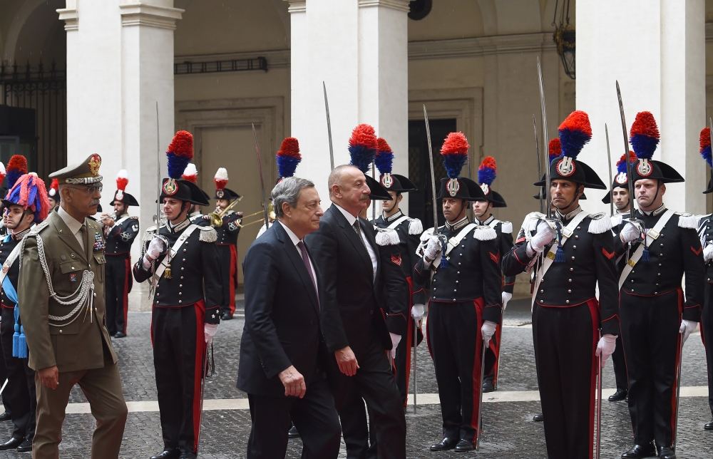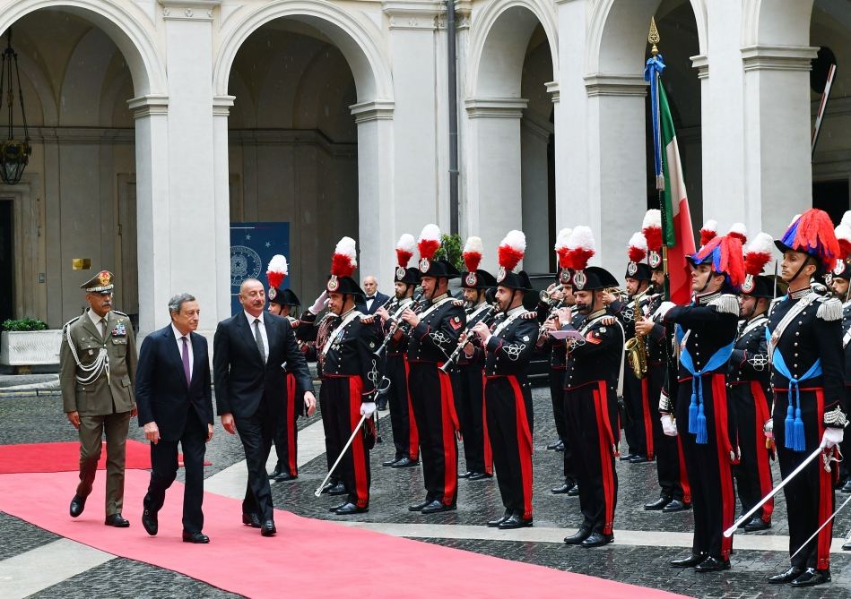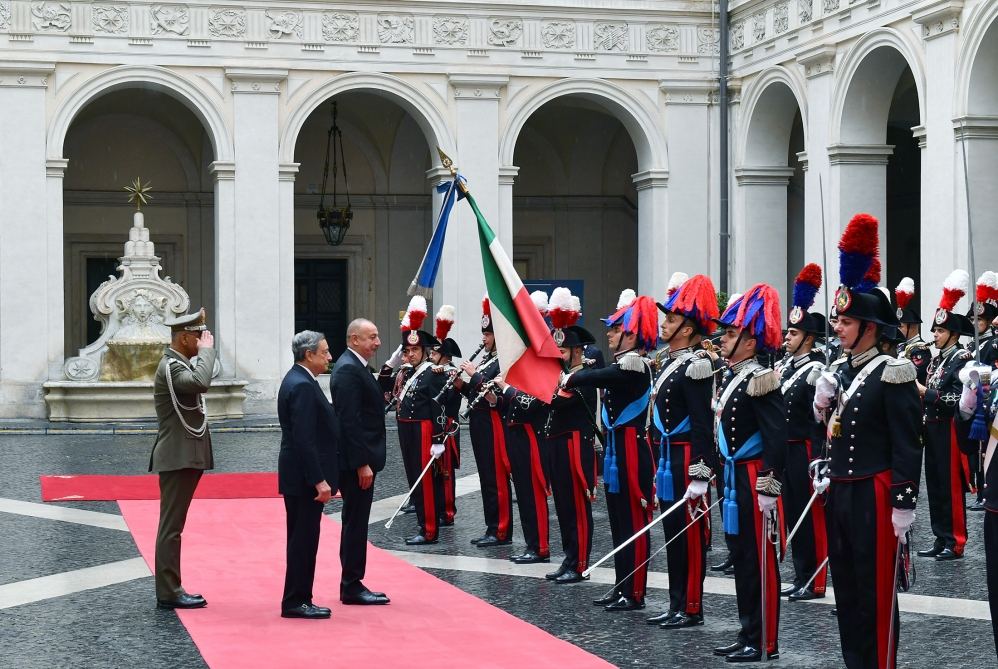 Azərbaycan Prezidenti İlham Əliyev və İtaliya Nazirlər Şurasının Sədri Mario Draqi fəxri qarovul dəstəsinin qarşısından keçdilər.