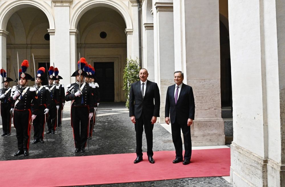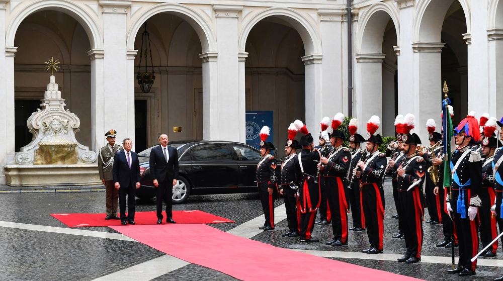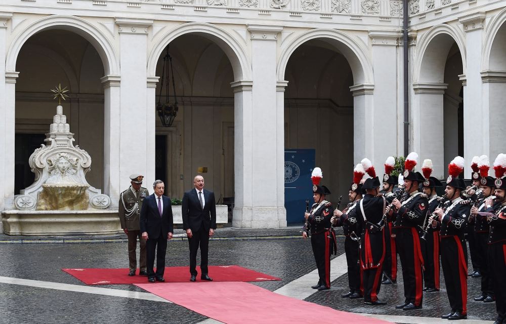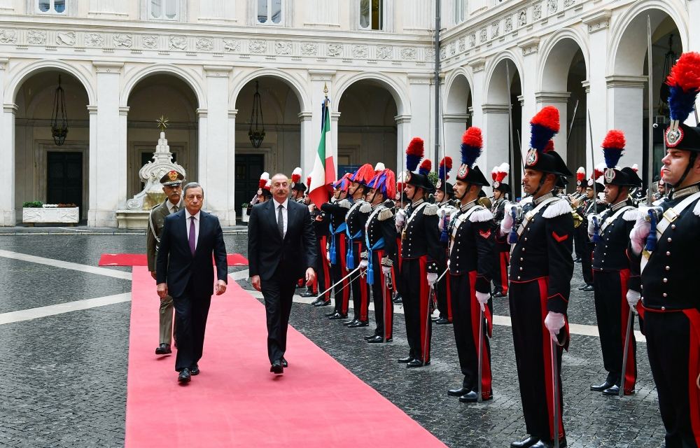 Nazirlər Şurasının Sədri Mario Draqi bu səfərin ölkələrimizin ikitərəfli münasibətlərinin inkişafına töhfə verəcəyini bildirdi, İtaliya ilə Azərbaycan arasında strateji tərəfdaşlıq səviyyəsində çox yaxşı əlaqələrin qurulduğunu və qarşılıqlı ticarət dövriyyəsinin davamlı surətdə artdığını, enerji sahəsində uğurlu əməkdaşlığın həyata keçirildiyini vurğuladı.