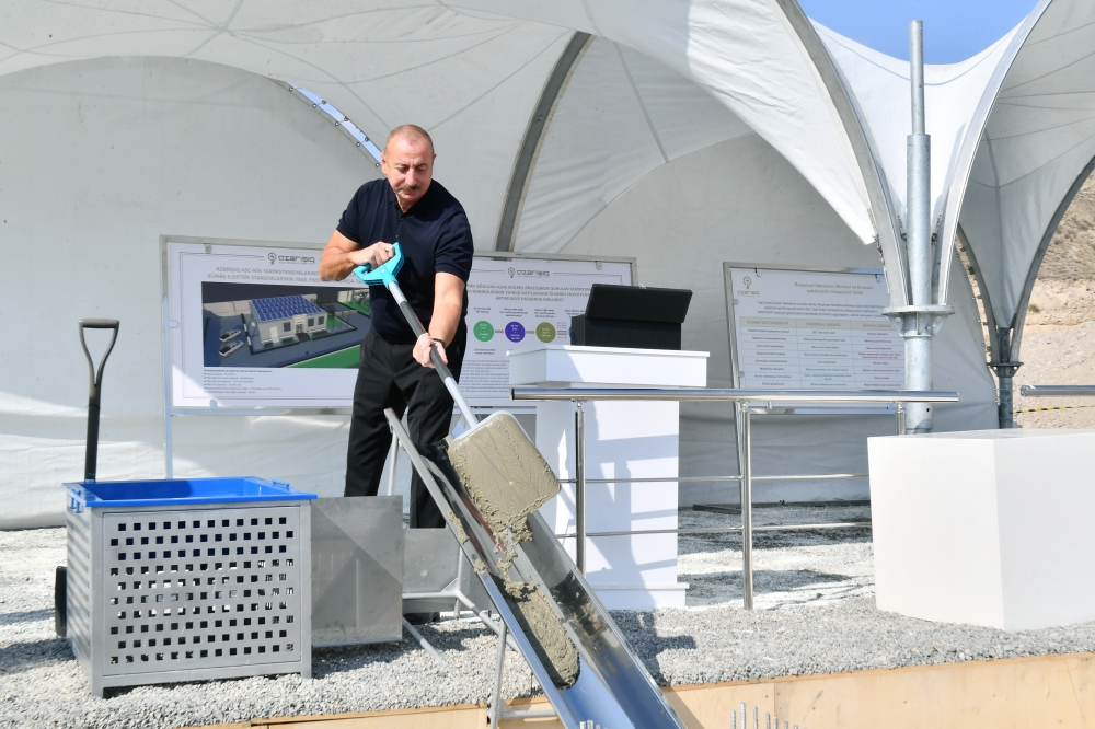 Dövlətimizin başçısı Cəbrayıl Elektrik Şəbəkəsinin Rəqəmsal İdarəetmə Mərkəzinin təməlini qoyub, 330/110 kilovoltluq beynəlxalq “Cəbrayıl" Qovşaq Yarımstansiyasında aparılan tikinti işləri ilə tanış olub.