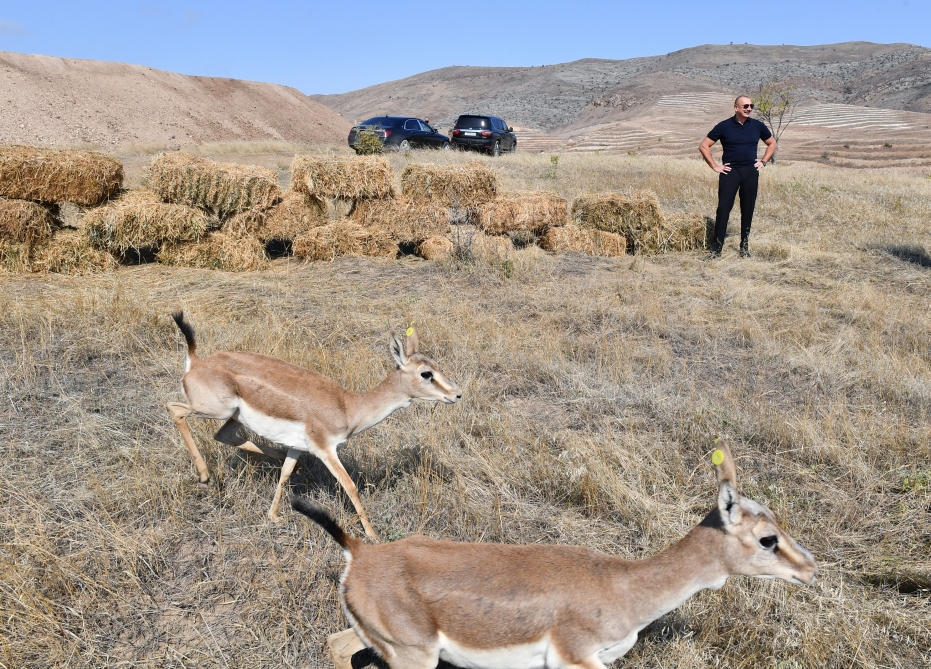 Prezident İlham Əliyev və birinci xanım Mehriban Əliyeva Cəbrayıl rayonu ərazisində yaradılacaq “Azərbaycan-Türkiyə Beynəlxalq Meşə Təlim Mərkəzi”, “Ağıllı Tingçilik” və “Dostluq Meşəsi” Kompleksi ilə tanış olublar. Dövlətimizin başçısı və birinci xanım reintroduksiya layihələrinin həyata keçirilməsi çərçivəsində Cəbrayıl rayonu ərazisinə 18 ceyranın buraxılması mərasimində iştirak ediblər.