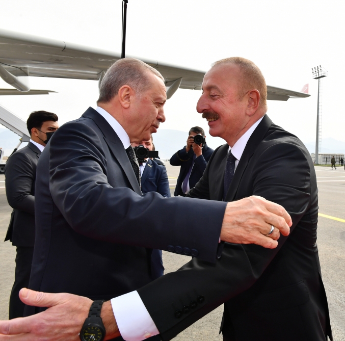 Türkiyə Prezidenti Rəcəb Tayyib Ərdoğanı hava limanında Azərbaycan Respublikasının Prezidenti İlham Əliyev qarşıladı.