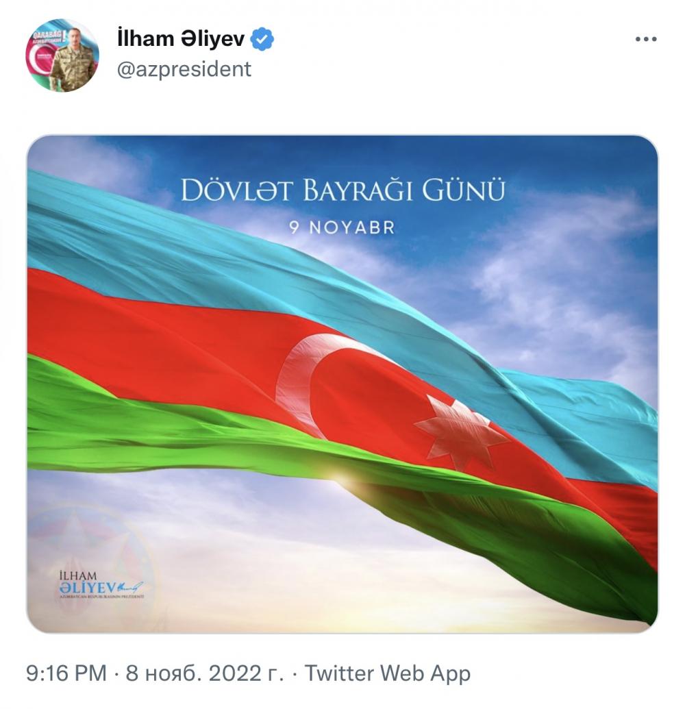 Prezident İlham Əliyev Dövlət Bayrağı Günü ilə bağlı paylaşım edib