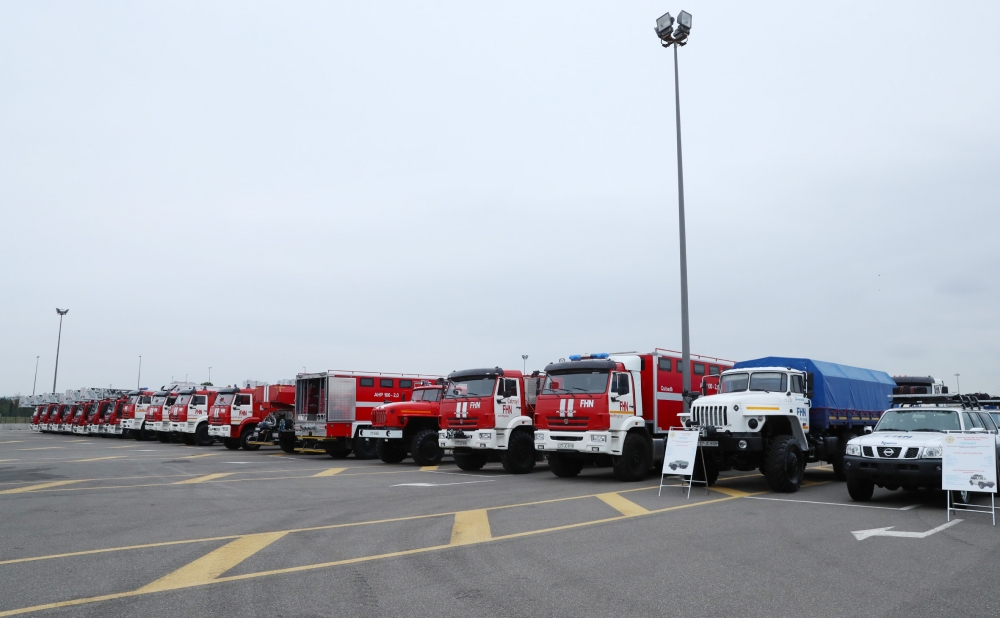Təqdim edilən texnikalar arasında “Ural” markalı avtomobillər də var. Bu avtomobillərdən də yanğın hadisəsi zamanı yüklərin daşınması və digər işlərin həyata keçirilməsi üçün nəzərdə tutulub.