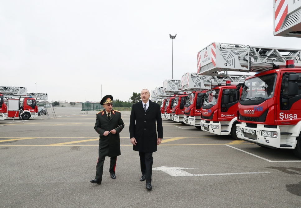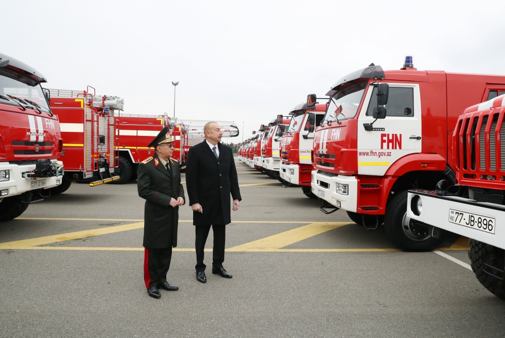 Prezident İlham Əliyevə məlumat verildi ki, işğaldan azad edilmiş ərazilərdə yanğından mühafizə üçün Fövqəladə Hallar Nazirliyi tərəfindən “KamAZ” markalı 100 yanğınsöndürən və “İveco” markalı 50 xüsusi təyinatlı yanğınsöndürən avtomobil alınıb. “İveco” markalı avtomobillərdən 9-u artıq idxal olunub, 41-nin idxalı isə 2023-cü ilin birinci rübündə nəzərdə tutulur.