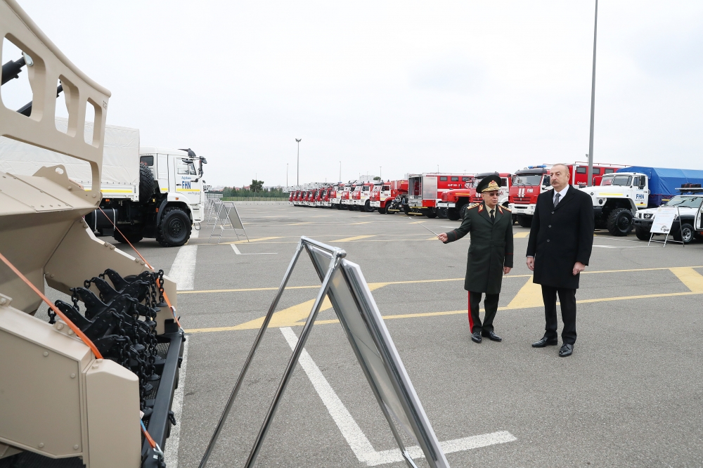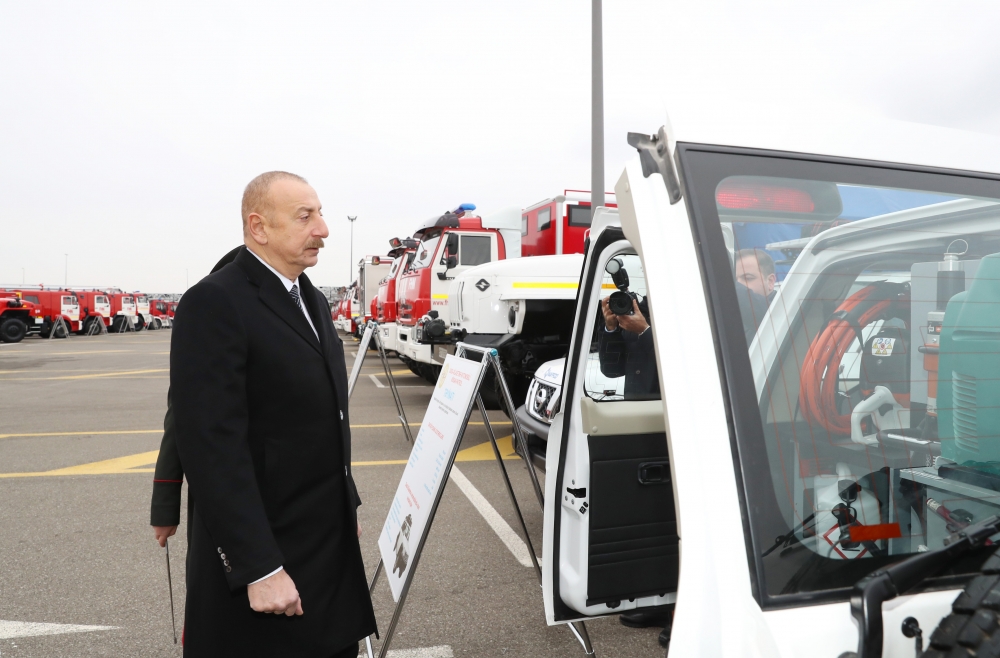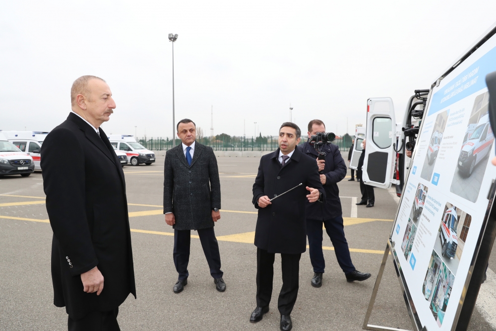 Dekabrın 9-da Azərbaycan Respublikasının Prezidenti İlham Əliyev Fövqəladə Hallar Nazirliyi (FHN) tərəfindən alınmış və işğaldan azad olunmuş ərazilərdə istifadə ediləcək xüsusi təyinatlı texnikalar və İcbari Tibbi Sığorta üzrə Dövlət Agentliyi tərəfindən alınmış müasir təcili tibbi yardım avtomobilləri ilə tanış olub.