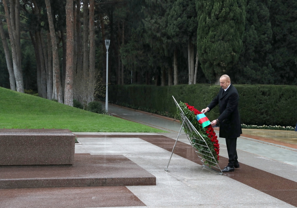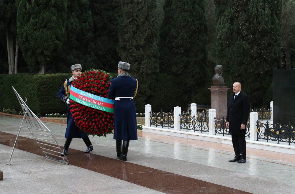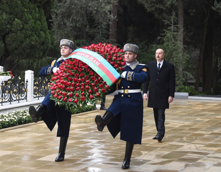 Prezident İlham Əliyev Ulu Öndərin məzarı önünə əklil qoydu.