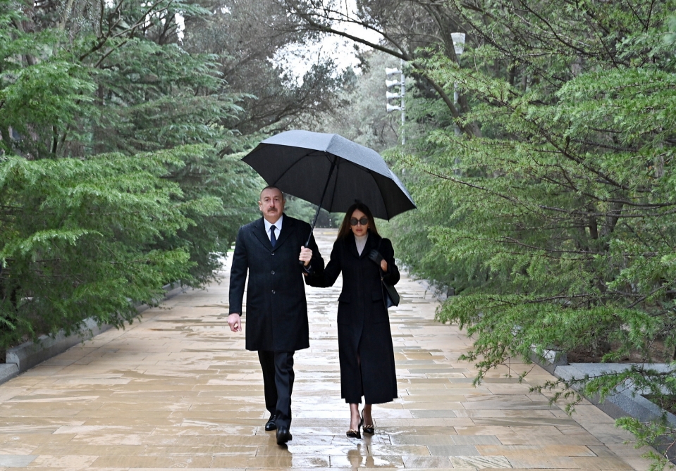 İlham Əliyev və Mehriban Əliyeva Ümummilli Lider Heydər Əliyevin məzarını ziyarət ediblər
