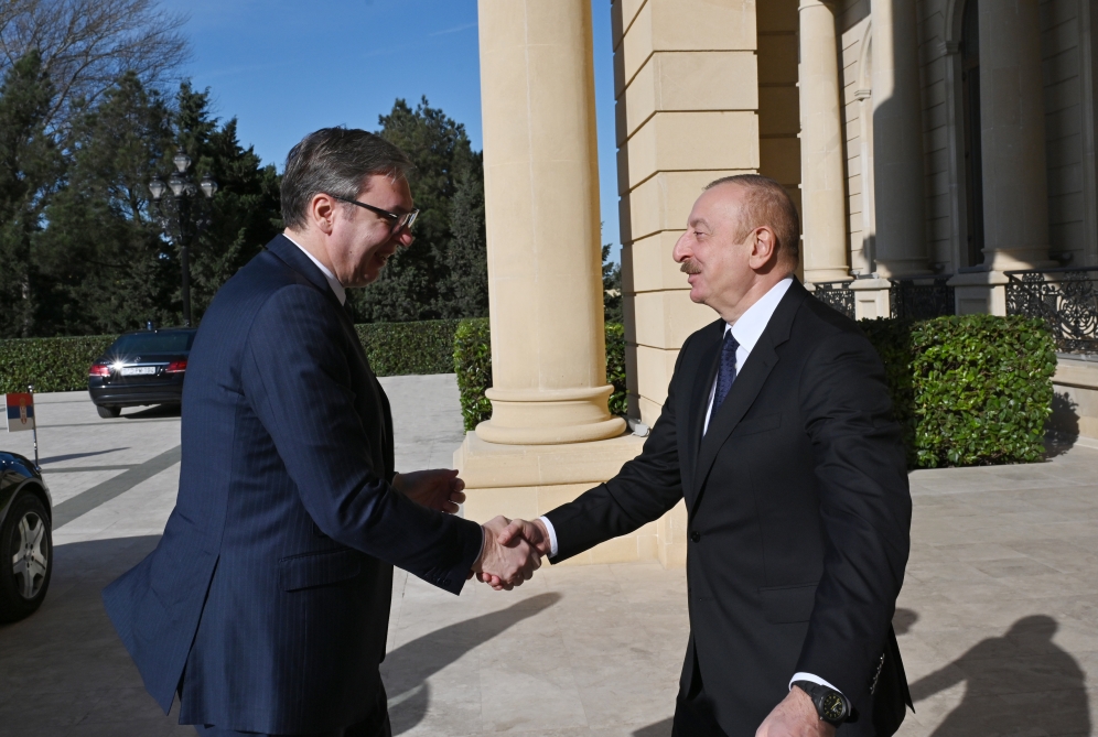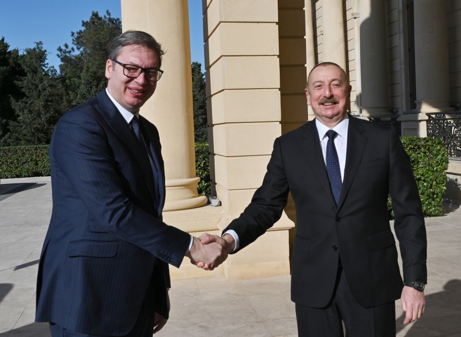AZƏRTAC xəbər verir ki, Azərbaycan Prezidenti İlham Əliyev Serbiya Prezidenti Aleksandar Vuçiçi qarşıladı.