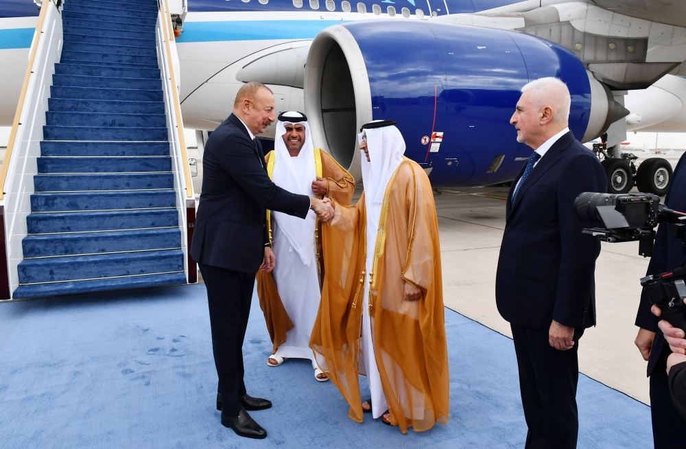 Prezident İlham Əliyev Birləşmiş Ərəb Əmirliklərinə işgüzar səfərə gəlib