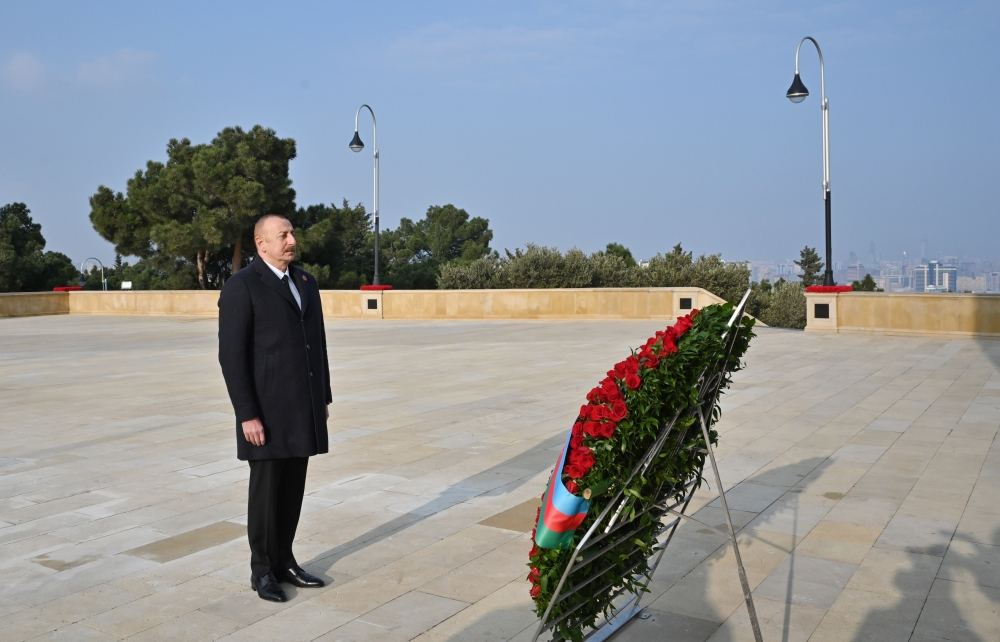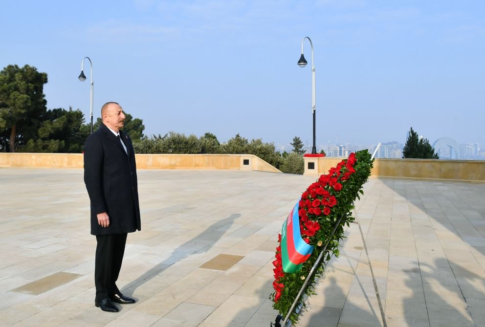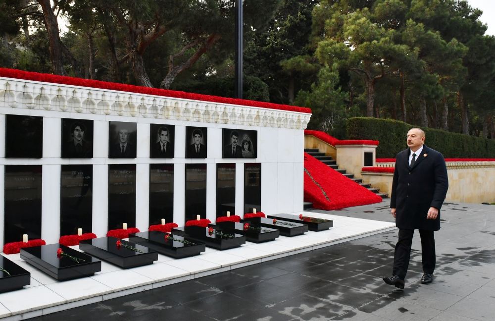 / / Prezident İlham Əliyev 20 Yanvar faciəsinin 33-cü ildönümü ilə əlaqədar Şəhidlər xiyabanını ziyarət edib