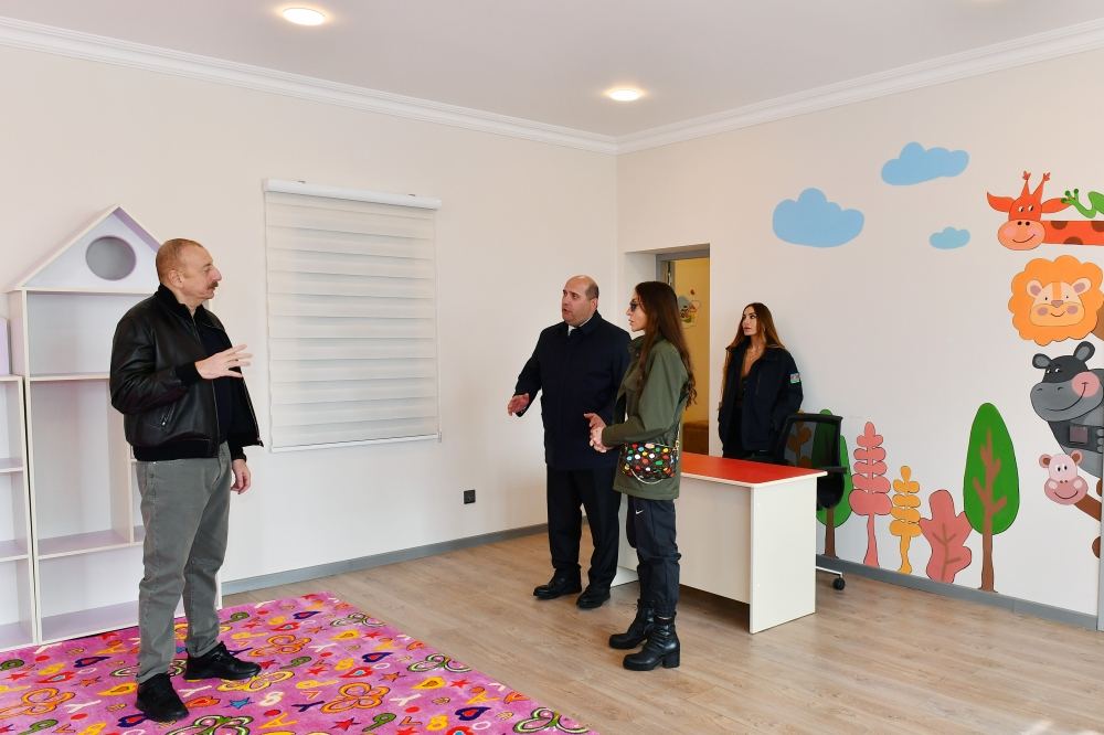 Prezident İlham Əliyev, birinci xanım Mehriban Əliyeva və Arzu Əliyeva kənd sakini Əyyub Əkbərovun evində yaradılan şəraitlə tanış oldular.