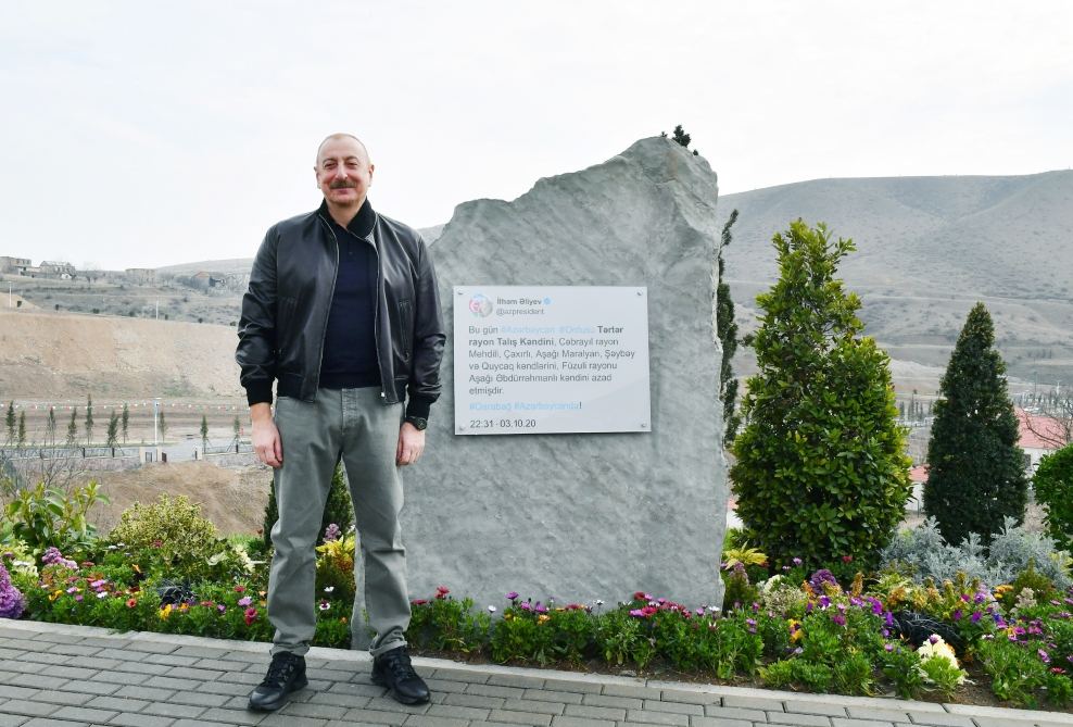 Azərbaycan Respublikasının Prezidenti İlham Əliyev, birinci xanım Mehriban Əliyeva və qızları Arzu Əliyeva martın 18-də Tərtər rayonunun Talış kəndində görülən işlərlə tanış olublar.