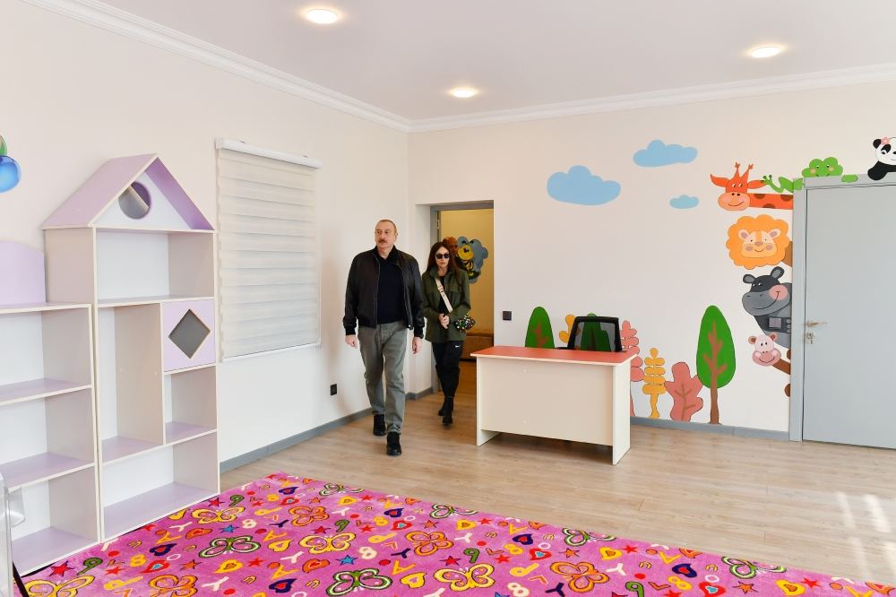 Prezident İlham Əliyev və birinci xanım Mehriban Əliyeva Talış kəndindəki uşaq bağçasında yaradılan şəraitlə də tanış oldular. Uşaq bağçasının birmərtəbəli binası da əsaslı təmir edilib. Bütün kommunikasiya sistemləri yenidən qurulub və bina yanğın siqnalizasiya, rabitə, videomüşahidə və fövqəladə hal xəbərverici sistemləri ilə təchiz edilib. Binanın daxili hissəsi bütün lazımi texniki xidmət avadanlığı ilə təchiz olunub. Həyətyanı ərazidə uşaqlar üçün rezin örtüklü oyun meydançası və iki söhbətgah inşa olunub. Bir sözlə, burada balacaların vaxtlarını maraqlı və səmərəli keçirmələri üçün hərtərəfli şərait yaradılıb.