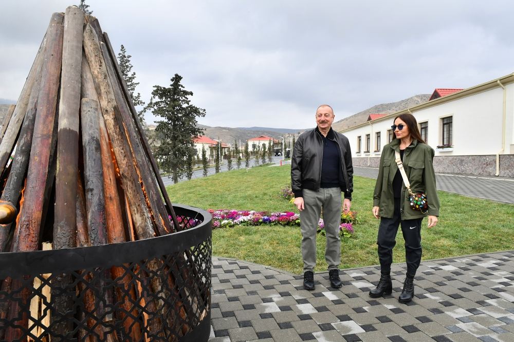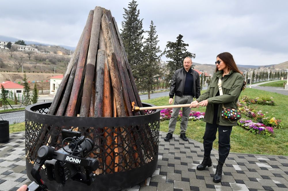 Üçüncü dəfədir ki, Azərbaycan xalqına Novruz təbriklərimi doğma Qarabağ diyarından deyirəm. Bu, böyük xoşbəxtlikdir. Bu xoşbəxtliyi bizə bəxş edən qəhrəman şəhidlərimizin əziz xatirəsini bu gün biz hörmətlə yad edirik. Allah bütün şəhidlərimizə rəhmət eləsin! Bu xoşbəxtliyi bizə bəxş edən qəhrəman Azərbaycan hərbçilərini buradan səmimiyyətlə salamlayıram. Onların canı-qanı bahasına biz doğma torpaqlarımıza qayıtmışıq.