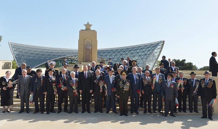 İkinci Dünya müharibəsində Azərbaycan xalqının mərd oğul və qızlarının göstərdikləri fədakarlıqlar, qəhrəmanlıqlar hər cür yüksək qiymətə layiqdir. Biz keçmiş ittifaq dövləti tərəfindən layiqincə qiymətləndirilən qəhrəmanlarımızla fəxr edirik. 600 mindən çox döyüşçünün iştirak etdiyi müharibədə 175 mindən çox azərbaycanlının orden və medallarla təltif edilməsi, 130 nəfərin Sovet İttifaqı Qəhrəmanı adına layiq görülməsi igid övladlarımızın cəsurluq nümunəsidir. İsrafil Məmmədov, Həzi Aslanov, Mehdi Hüseynzadə, Qafur Məmmədov, Gəray Əsədov, Ziya Bünyadov və digər Sovet İttifaqı Qəhrəmanlarımız hər bir azərbaycanlının iftixar mənbəyidir.