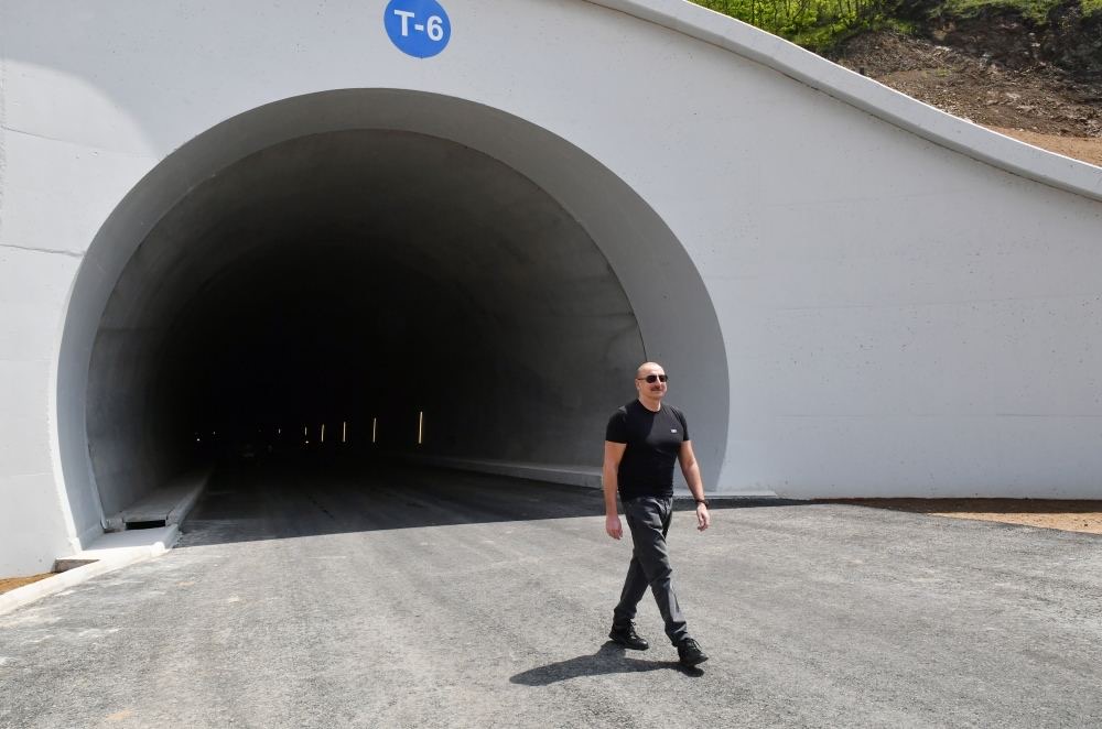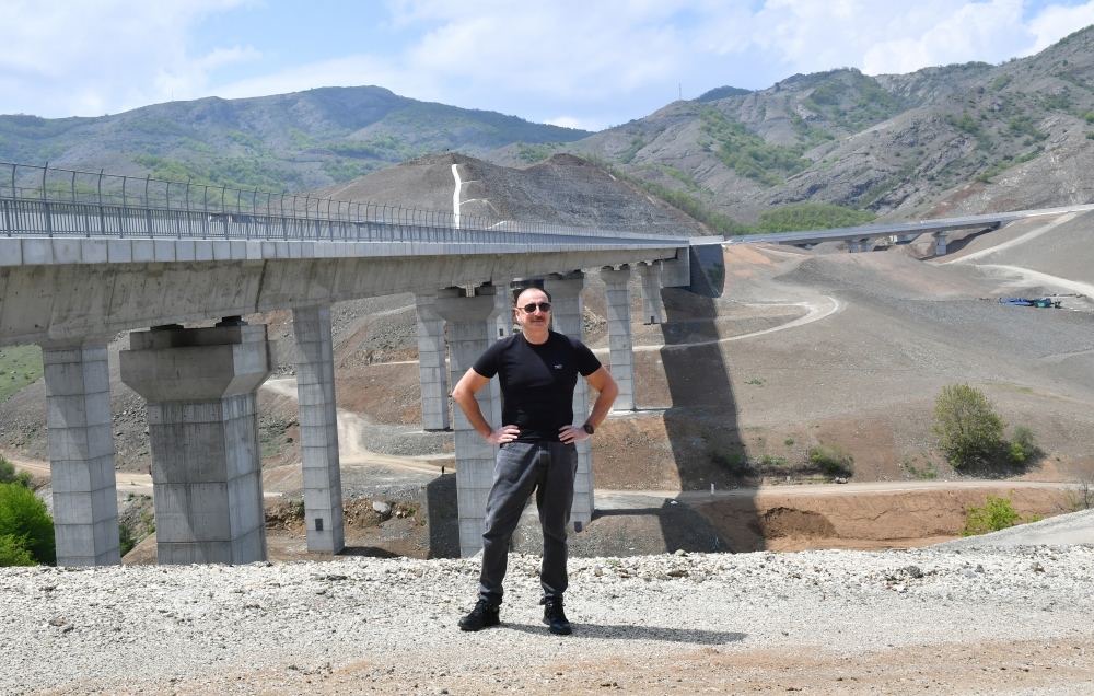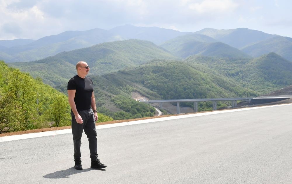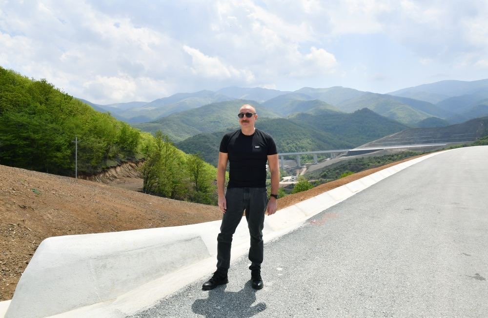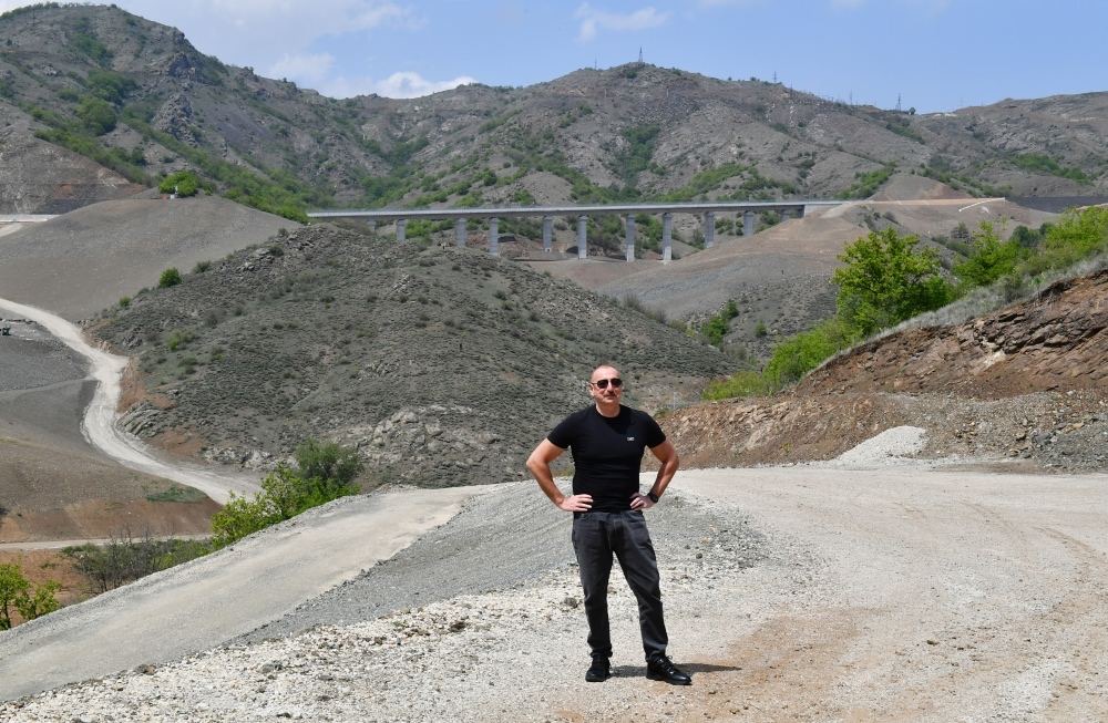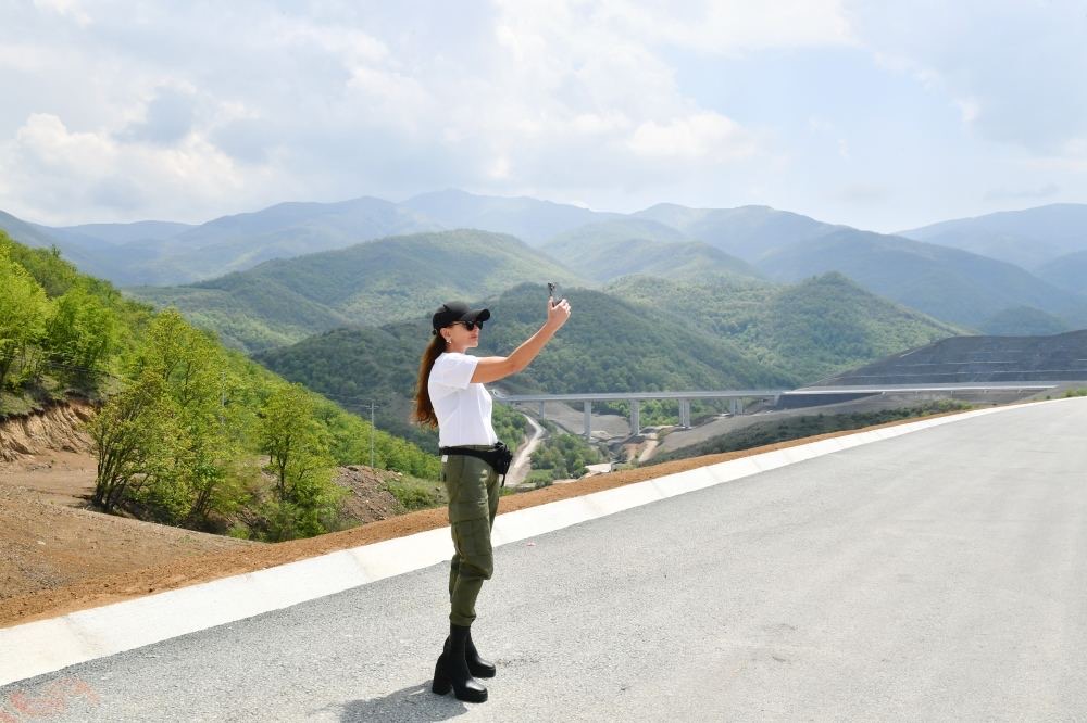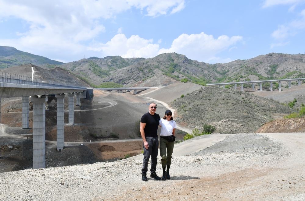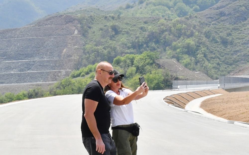 Prezident və Birinci xanım Əhmədbəyli-Füzuli-Şuşa magistral avtomobil yolunda görülən işlərlə tanış olublar