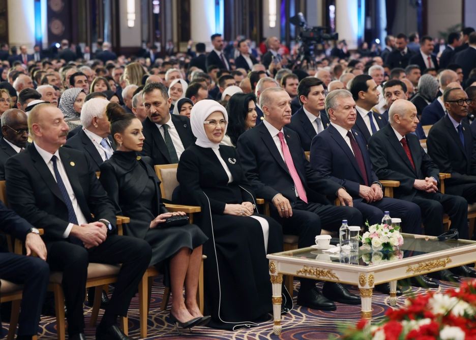 Türkiyə Prezidenti Rəcəb Tayyib Ərdoğan və xanımı Əminə Ərdoğan mərasimdə iştirak edən Azərbaycan Prezidenti İlham Əliyevi, birinci xanım Mehriban Əliyevanı, digər dövlət və hökumət başçılarını, nümayəndə heyətlərinin rəhbərlərini salamladılar.