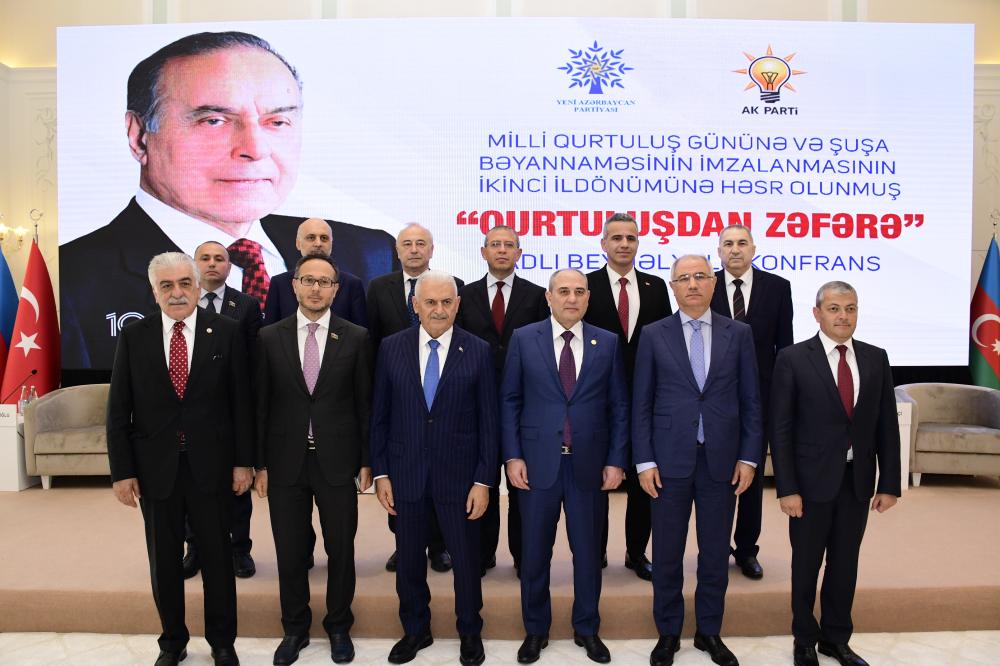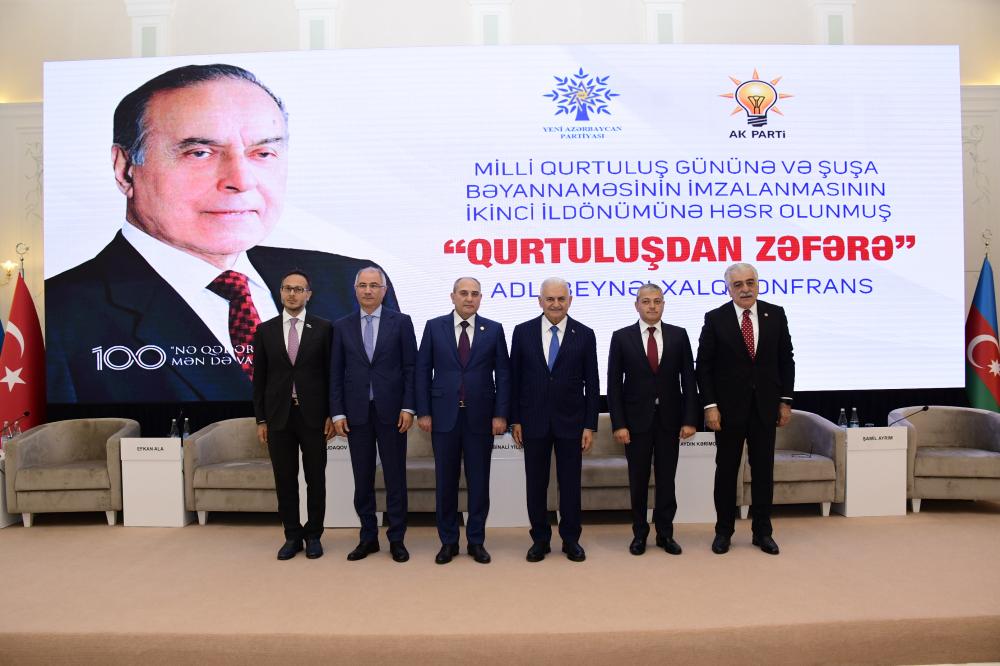 Çıxış edən Ədalət və İnkişaf Partiyası Sədrinin birinci müavini, Türk Dövlətləri Təşkilatı Ağsaqqallar Şurasının sədri Binəli Yıldırım bildirib ki, bu gün biz Şuşada 15 İyun – Milli Qurtuluş Gününü və Şuşa Bəyannaməsinin imzalanmasının ikinci ildönümünü qeyd edirik. “Qurtuluşdan Zəfərə” adlı beynəlxalq konfransda iştirak etməkdən qürur duyduğunu söyləyən Binəli Yıldırım “Dəvət üçün Yeni Azərbaycan Partiyasının rəhbərliyinə təşəkkür edirik. Türk dünyasının seçilən iki dövləti - Türkiyə ilə Azərbaycan arasındakı strateji əlaqələr daim zirvədə olacaq” ,- deyə vurğulayıb.