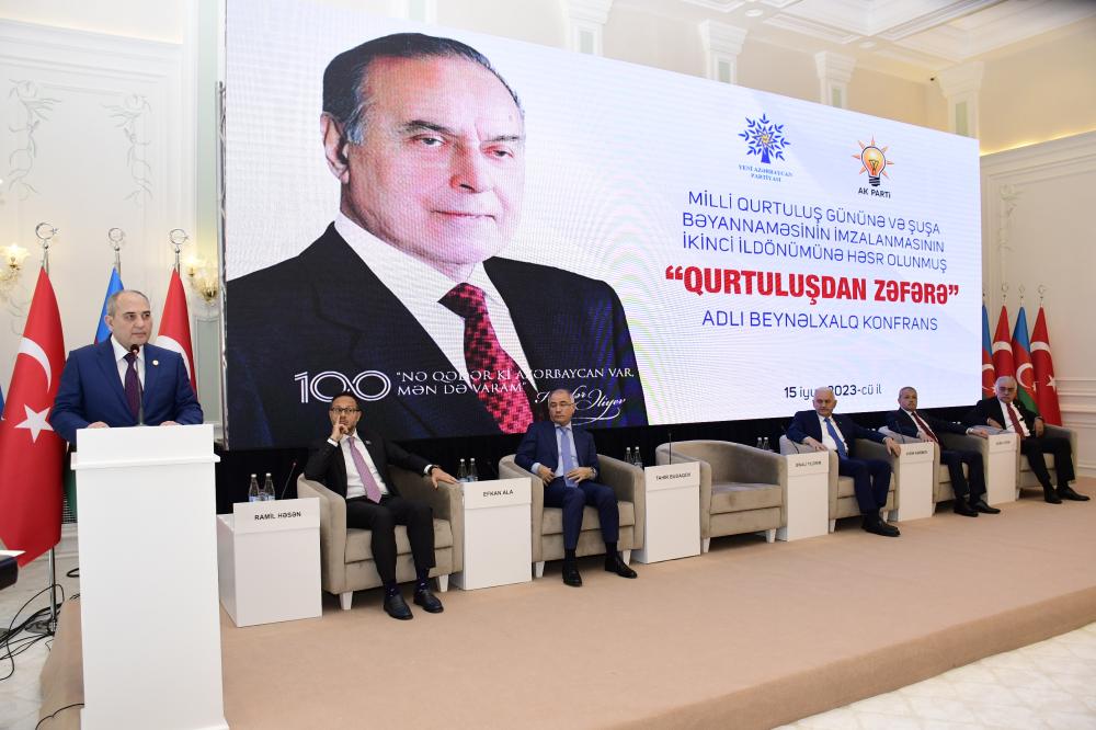 Şuşada Yeni Azərbaycan Partiyası və Ədalət və İnkişaf Partiyasının birgə təşkilatçılığı ilə Milli Qurtuluş Gününə və Şuşa Bəyannaməsinin imzalanmasının ikinci ildönümünə həsr olunmuş beynəlxalq konfrans keçirilib