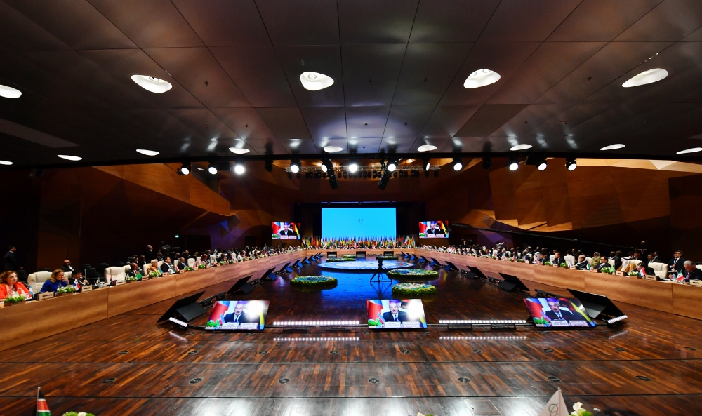 Xanımlar və cənablar, sədrliyimiz dövründə Azərbaycan xalqı üçün ən önəmli və yaddaqalan məqam Vətən müharibəsində bizim tarixi Qələbəmiz oldu. 2020-ci ildə Azərbaycan Ermənistanı döyüş meydanında məğlub edərək Ermənistanın 30 illik işğalına son qoydu. İşğalçı ölkə kimi Ermənistan kapitulyasiya aktını imzalamağa məcbur oldu. Bununla da Azərbaycan öz ərazi bütövlüyünü və tarixi ədaləti bərpa etdi, BMT Təhlükəsizlik Şurasının 1993-cü ildə qəbul etdiyi dörd qətnaməsinin icrasını özü təmin etdi. Azərbaycanın bu Qələbəsi beynəlxalq hüququn və ədalətin zəfəridir.
