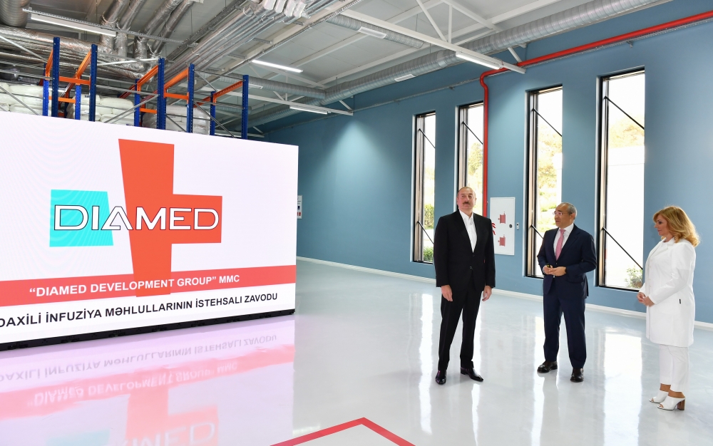 Azərbaycan Respublikasının Prezidenti İlham Əliyev Bakının Pirallahı rayonunda “Diamed” dərman istehsalı zavodunun açılışında iştirak edib.