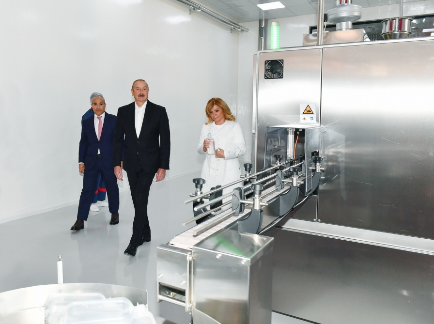 İstehsal prosesi ilə yaxından tanış olan dövlətimizin başçısına məlumat verildi ki, zavodda müxtəlif adlarda, geniş çeşiddə (NaCl 0,9 faiz; Ringer; Ringer laktat; Qlükoza və s.) və müxtəlif həcmlərdə (100 ml, 200 ml, 250 ml, 400 ml, 500 ml) həyati vacib və zəruri venadaxili dərman məhlulları istehsal olunacaq. Müəssisənin illik istehsal gücü 20 milyon litrdir. Qeyd olundu ki, ölkəmizin bu dərmanlara olan illik tələbatı isə təxminən 15 milyon litrdir. Beləliklə, müəssisədə istehsal edilən məhsulların yerli bazarın tələbatını ödəməsi ilə yanaşı, Rusiya, Gürcüstan və Orta Asiya ölkələrinə ixracı da nəzərdə tutulur.