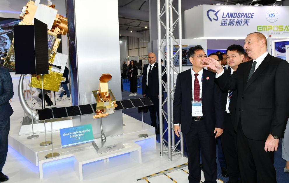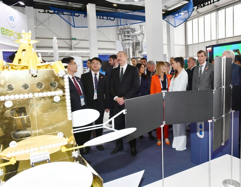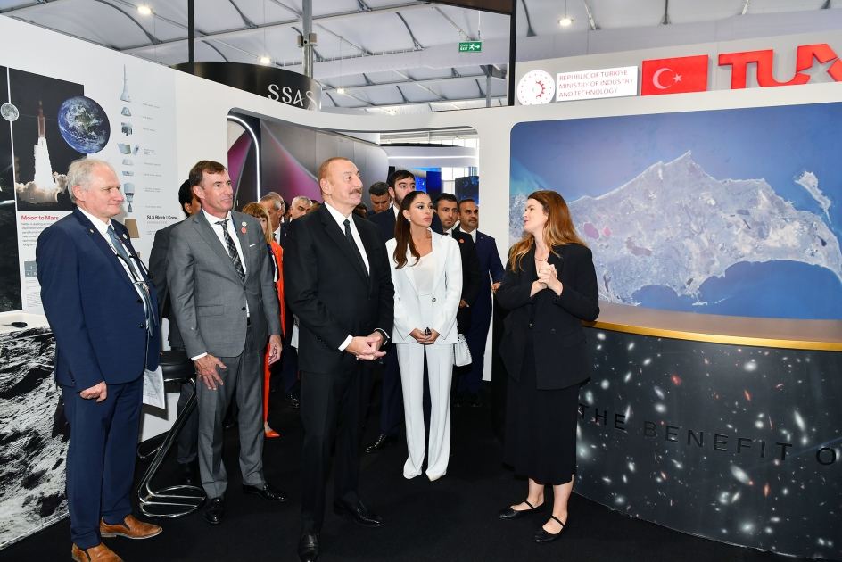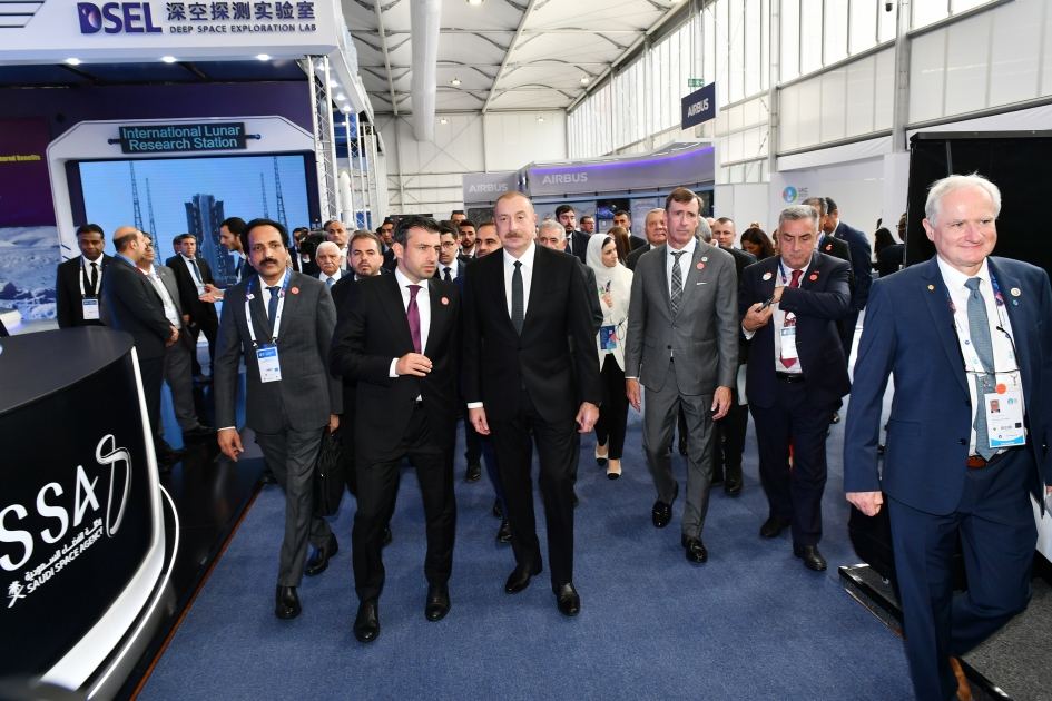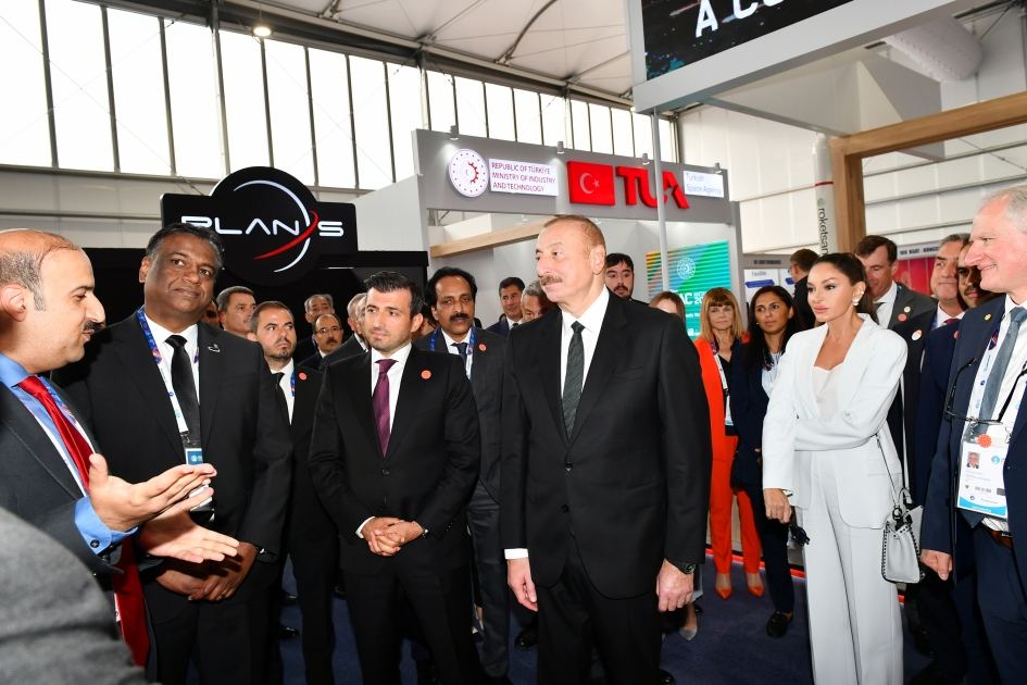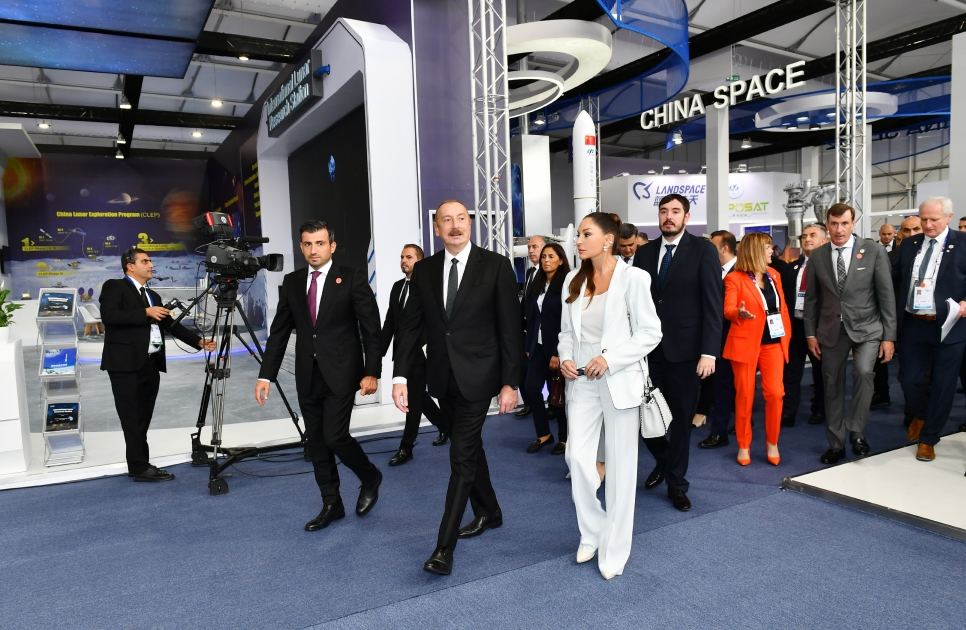 Dövlətimizin başçısı və birinci xanım Türk Kosmik Agentliyinin, Səudiyyə Ərəbistanının Kosmik Agentliyinin, ABŞ-ın Milli Aeronavtika və Kosmos Administrasiyasının (NASA), Hindistanın Kosmik Tədqiqatlar Təşkilatının, “Israel Aerospace Industries” şirkətinin, İtaliyanın Aeronavtika və Astronavtika Assosiasiyasının, Çinin Astronavtika Cəmiyyətinin və digər şirkətlərin stendlərinə baxdılar.