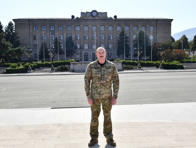 / / Prezident İlham Əliyev Xankəndi şəhərində Azərbaycan Respublikasının Dövlət Bayrağını ucaldıb YENİLƏNİB