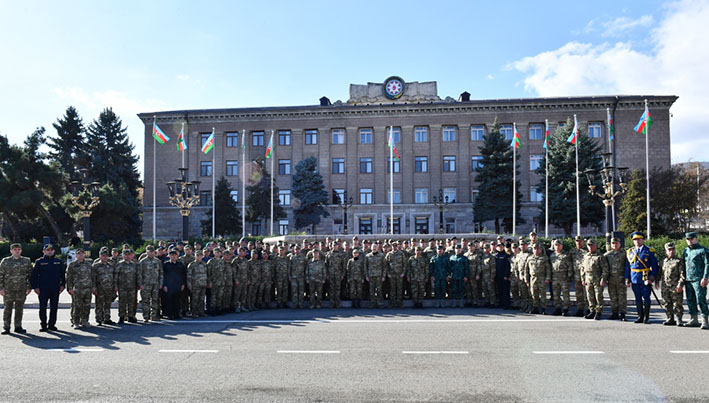Xankəndi paradı zamanı çıxış edən Prezident İlham Əliyev qeyd edib ki, bu gün hər kəs bilməlidir ki, bizimlə bundan sonra heç kim zarafat etməsin. Ermənistan rəhbərliyi əgər revanşist fikirlərlə yaşayırsa, Ermənistanın arxasında dayanan manipulyasiyaya öyrəşmiş ölkələr əgər yenə də Azərbaycan üçün hansısa məkrli plan qurursa, o, bugünkü parada bir nəzər yetirsin: “Bilsin ki, burada mindən çox igidimiz düzülübdür və bizim 100 mindən çox onlar kimi igidlərimiz var və heç bir qüvvə bizi təhdid edə bilməz. Biz istənilən müstəvidə döyüşə hazırıq, siyasi, lazım olarsa, hərbi meydanda bunu göstərmişik. XXI əsrdə heç bir ordu bizim qədər peşəkarlıq, fədakarlıq göstərməmişdir. Heç bir xalq öz doğma torpağını bu qədər əziz tutub uğrunda ölümə getməyə hazır olmamışdır. Bunu biz hamımız yaxşı bilirik, bunu dünya da bilsin”.