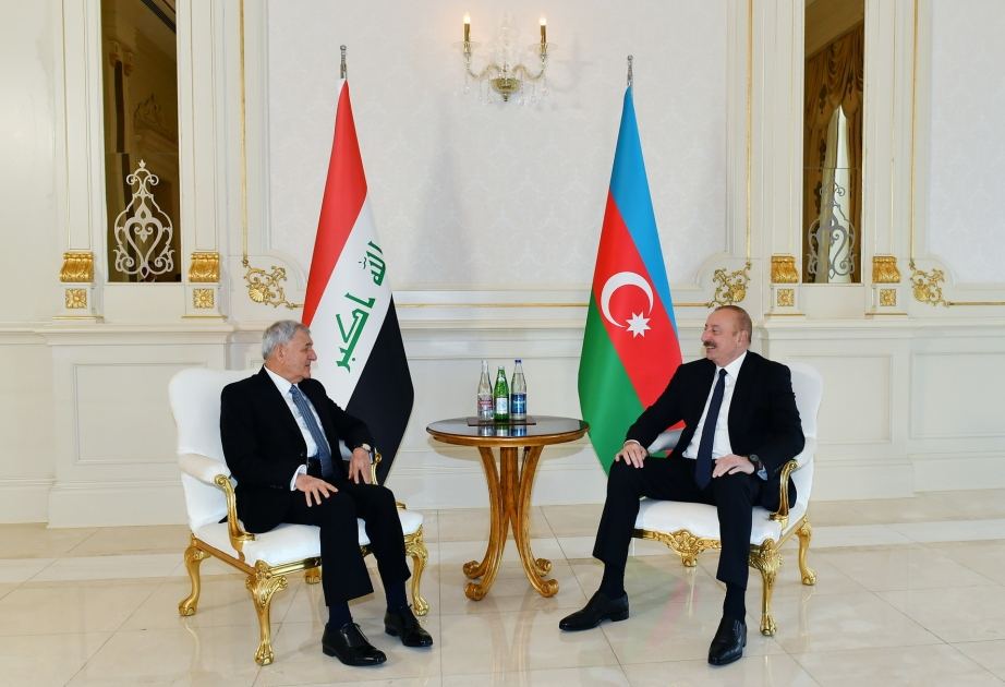 AZƏRTAC xəbər verir ki, dövlətimizin başçısı İraq Prezidentinin Qoşulmama Hərəkatının Zirvə toplantısı çərçivəsində Azərbaycana səfərini və keçirdikləri görüşü məmnuniyyətlə xatırladı. İraq Prezidentinin ölkəmizə ilk dəfə rəsmi səfərə gəlməsindən məmnunluğunu bildirən Prezident İlham Əliyev bu səfərin və səfər zamanı aparılacaq müzakirələrin ölkələrimiz arasında əlaqələrin daha da inkişafına mühüm töhfə verəcəyinə əminliyini ifadə etdi.