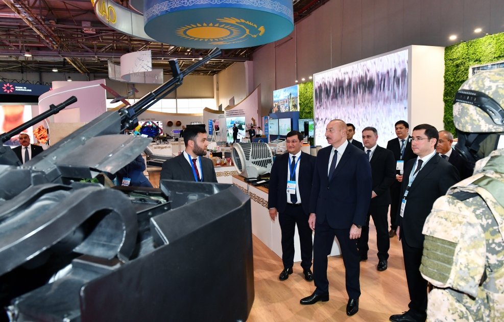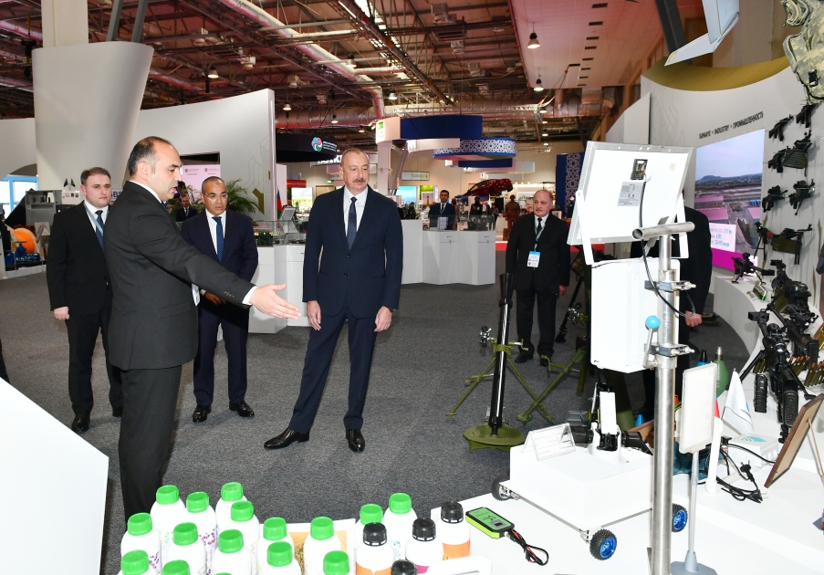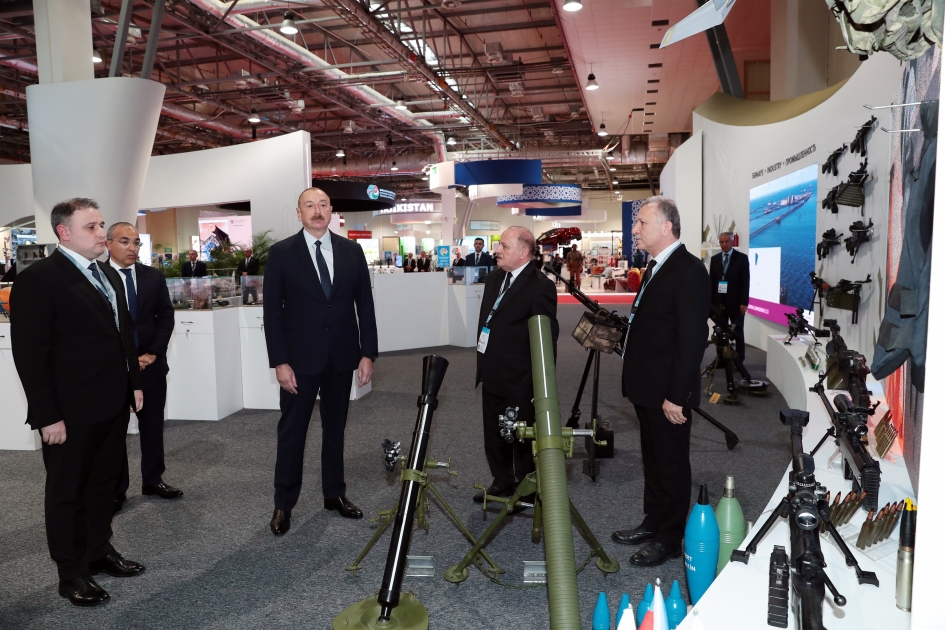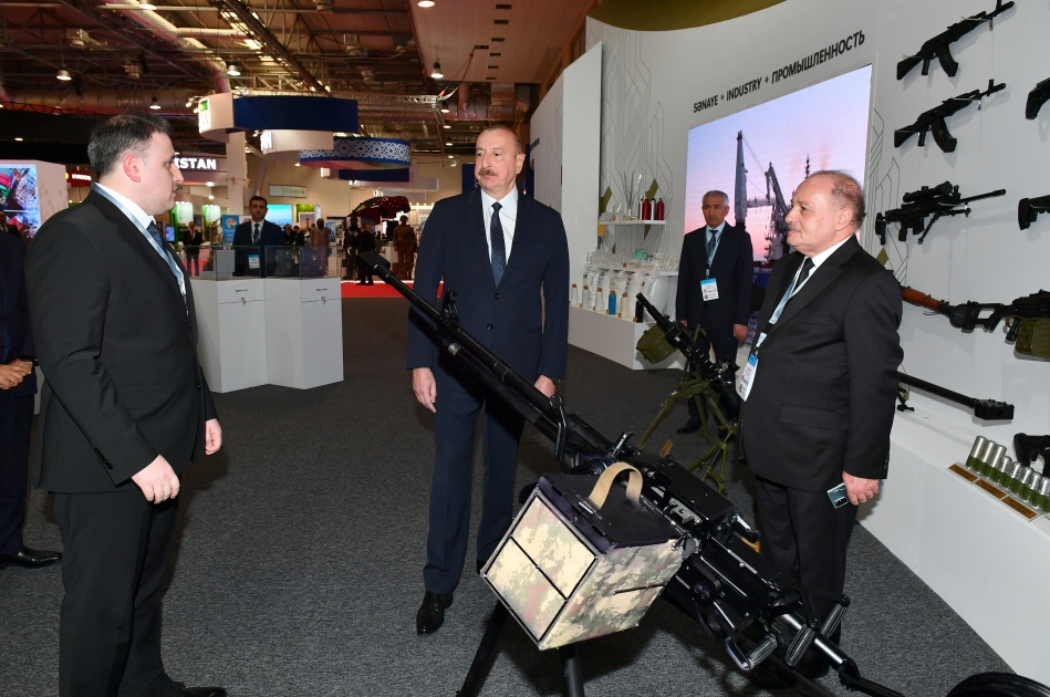 Müdafiə sənayesi naziri Vüqar Mustafayev dövlətimizin başçısına məlumat verdi ki, sərgidə nazirliyin müəssisələrində istehsal olunan müxtəlif növ atıcı silahlar, yaxınməsafəli döyüş vasitələri, minaatanlar, müxtəlif çaplı döyüş sursatları, pilotsuz uçuş aparatları və s. olmaqla 88 adda müdafiə təyinatlı məmulat nümayiş etdirilir. Əvvəlki sərgilərdən fərqli olaraq bu sərgidə ilk dəfə yeni yaradılan “AH-12,7” iriçaplı pulemyot da təqdim olunur.