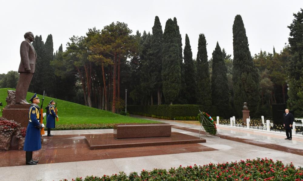 Prezident İlham Əliyev Ulu Öndərin məzarı önünə əklil qoydu.