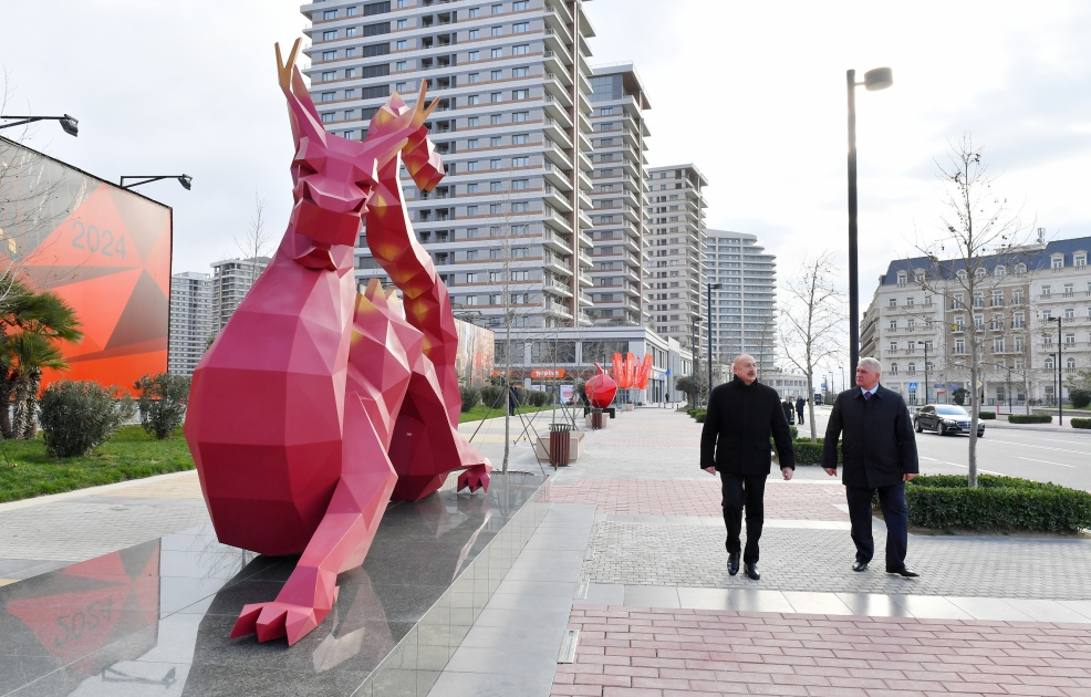 Azərbaycan MAAS incəsənət qurumunun müasir üslubda hazırladığı hündürlüyü 4,2 metr olan “Əjdaha” heykəli 2024-cü ilin rəmzinə həsr olunub. Şərq təqviminə görə 2024-cü ilin rəmzi əjdahadır.