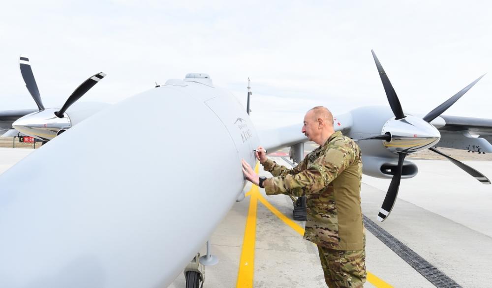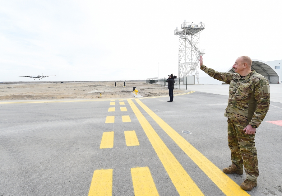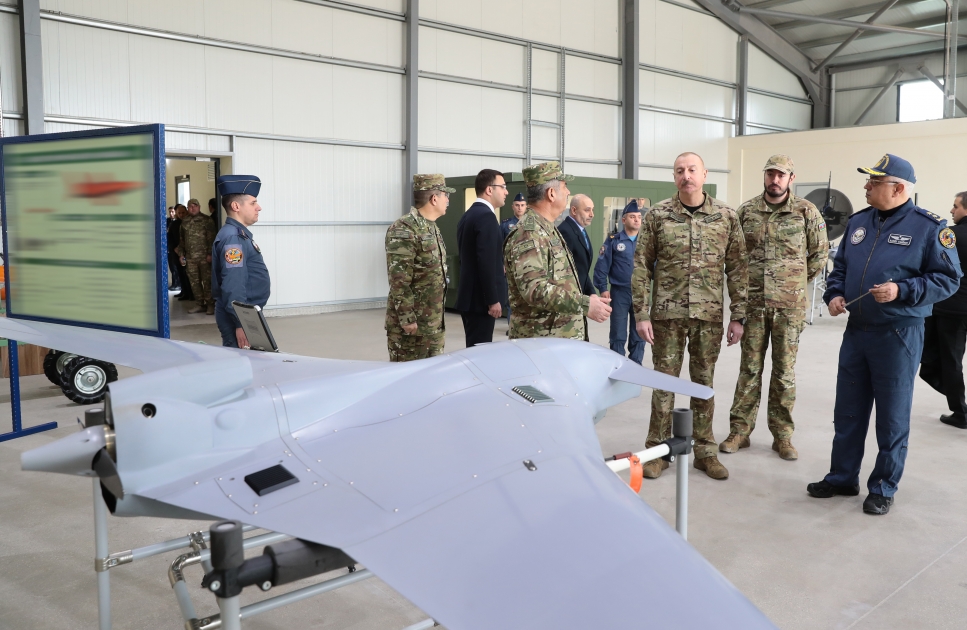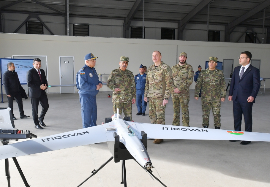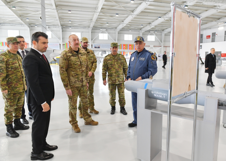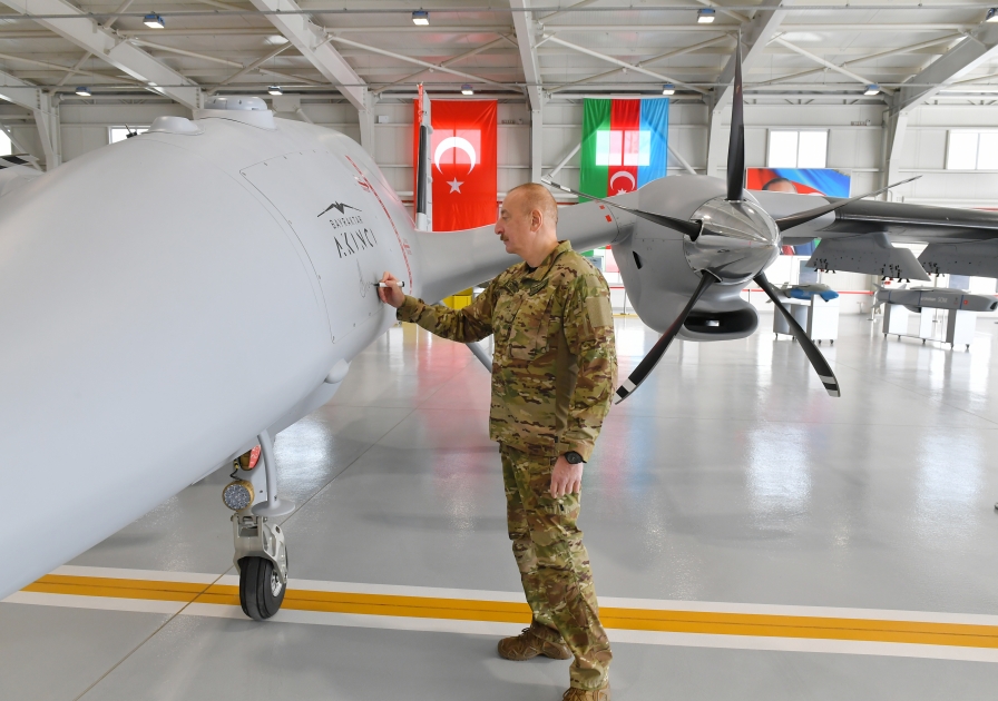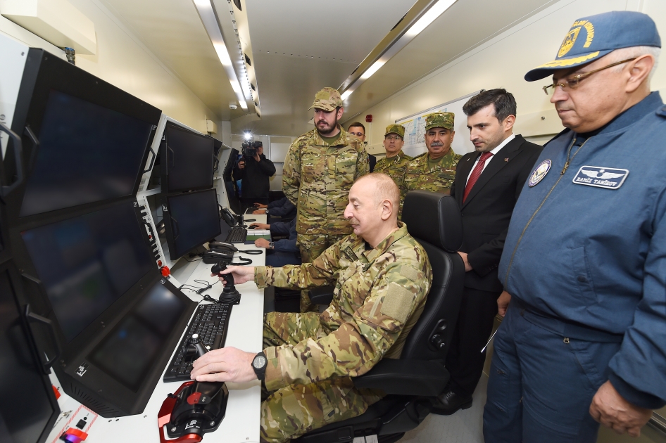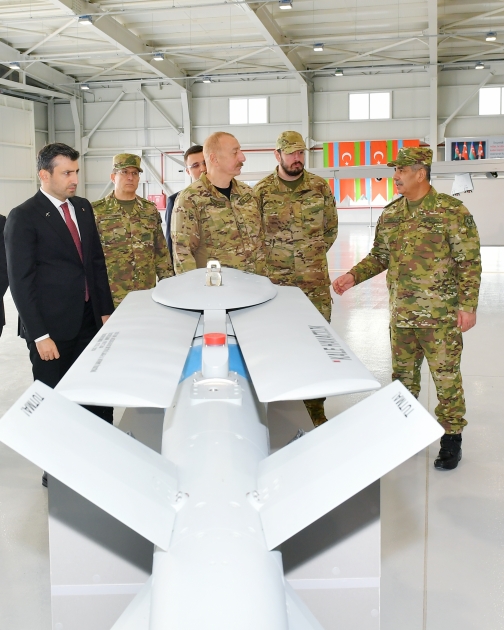 Sonra Ali Baş Komandan yeni hərbi obyektdə müxtəlif tipli PUA üçün uçuş-enmə zolağına gəldi. “Akıncı” hücum PUA-sının havaya qalxmasını izlədikdən sonra idarəetmə məntəqəsinə gələn Prezident İlham Əliyev burada PUA-nın idarəolunmasını praktiki həyata keçirdi.