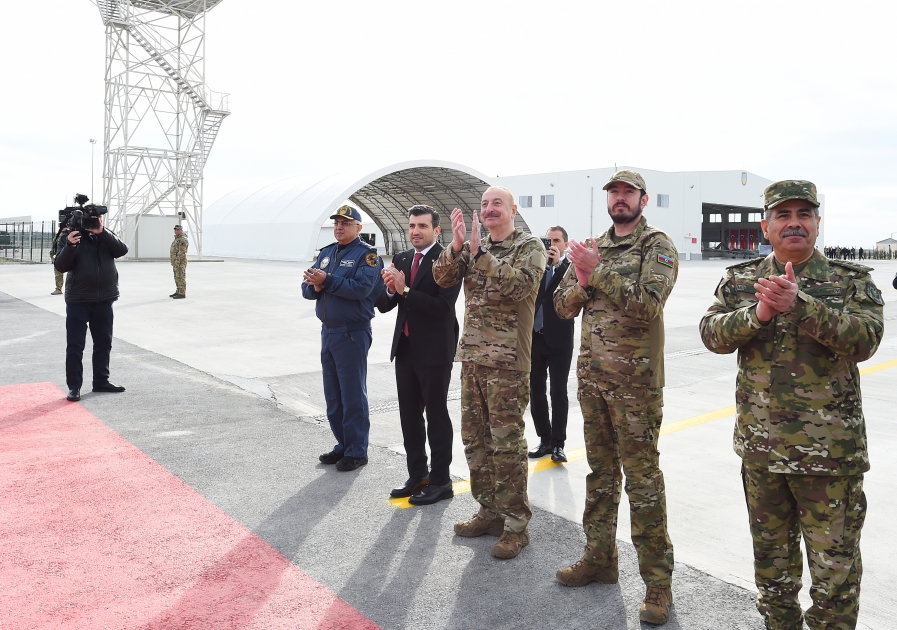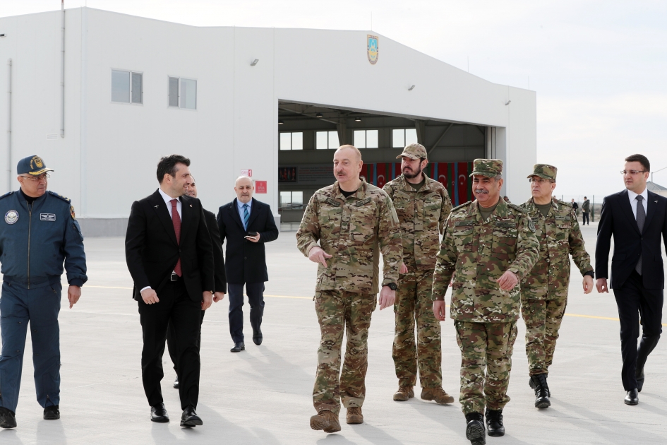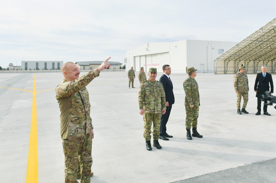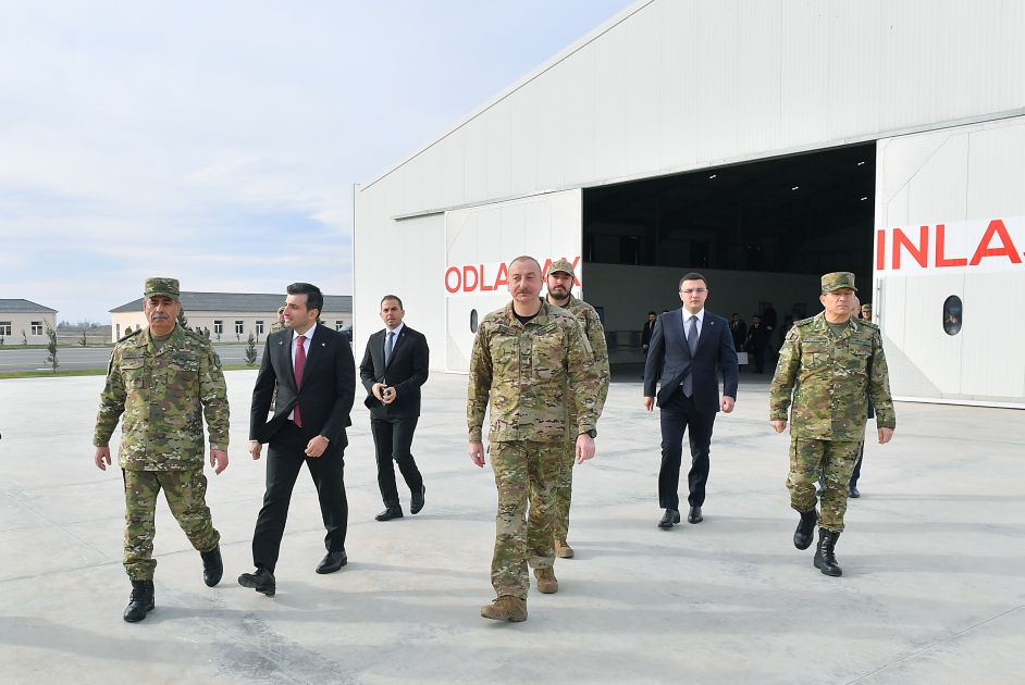 Daha sonra Prezident İlham Əliyev yeni inşa edilmiş anqar komplekslərinə baxış keçirdi.