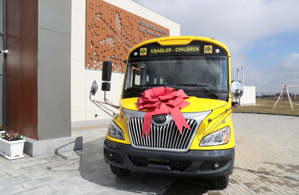 Prezident Kasım-Jomart Tokayev: Bu avtobus bizim hədiyyəmizdir. Qazaxıstanın uşaqlara ərməğanıdır, istifadə etmələri üçündür. Üzərində “Balalar” yazılıb.