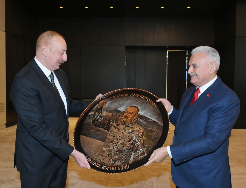 Türk Dövlətləri Təşkilatının Ağsaqqallar Şurasının sədri Binəli Yıldırım Azərbaycan Respublikasının Prezidenti İlham Əliyevə xatirə hədiyyəsi təqdim etdi.