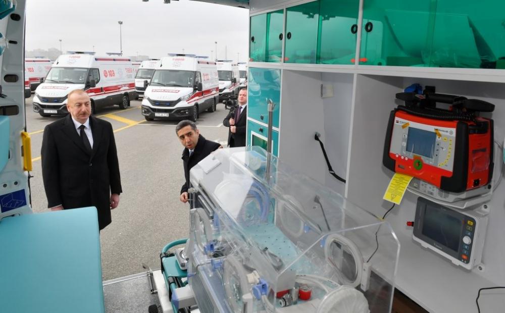 Bildirilib ki, ambulansların alınmasında məqsəd əhaliyə göstərilən təcili və təxirəsalınmaz tibbi yardım xidmətinin keyfiyyətini yaxşılaşdırmaqdır. Qeyd olunub ki, İtaliyanın “Iveco Daily 35S15/E4” markalı 100 ədəd təcili tibbi yardım avtomobilindən 66-sı sadə diferensiallı, 3-ü psixiatrik, 20-si reanimobil, 1-i portativ rentgen aparatlı və 10-u perinatal küvəzlidir.