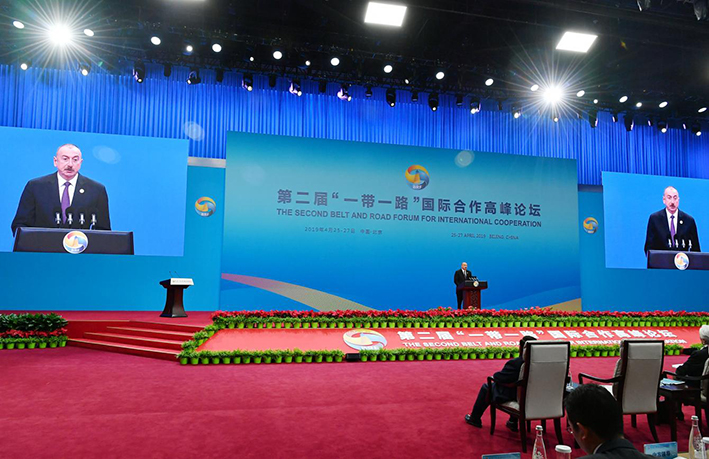 2019-cu ilin aprelində Pekində keçirilən 2-ci “Bir kəmər, bir yol” Beynəlxalq Əməkdaşlıq Forumunda iştirak edən Azərbaycanın dövlət başçısı bəyan etdi ki, biz coğrafi mövqeyimizdən bəhrələnərək Asiya ilə Avropa arasında körpülərin qurulmasına investisiya yatırırıq. “Açıq dənizə çıxışı olmayan ölkə olmağımıza baxmayaraq, biz Azərbaycanı beynəlxalq nəqliyyat mərkəzlərindən birinə çevirmişik. Bizi qonşularımızla birləşdirən şaxələnmiş dəmir yolu şəbəkəsi yaratmışıq”.