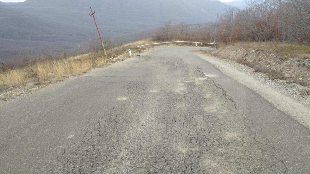 Yolun bəzi hissələrində hərəkət zolağı dərəyə doğru sürüşərək dağılıb, yolda 4-5 metr uzunluğunda iri və xırda çatlar əmələ gəlib. Yolun digər tərəfində isə asfalt örtüyü dağılaraq, iri qabarmalar yaranıb.