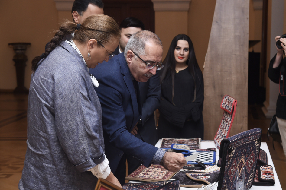 AZƏRTAC xəbər verir ki, əvvəlcə qonaqlar Mədəniyyət üzrə Elmi-Metodiki və İxtisasartırma Mərkəzi tərəfindən filarmoniyanın foyesində nümayiş etdirilən “Mədəniyyətimiz naxışların izi ilə” adlı sərgi ilə tanış olublar.