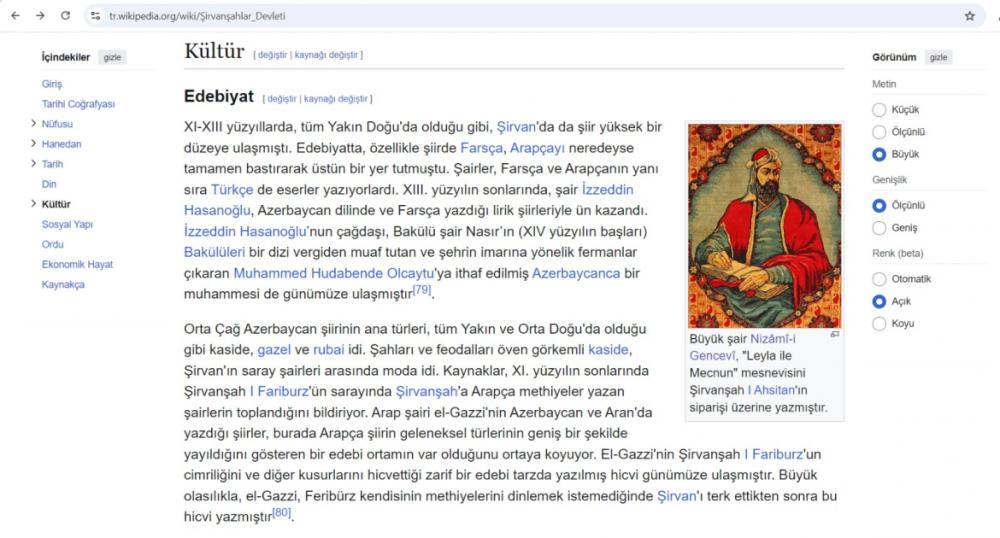 Azərbaycan tarixinin, milli mədəniyyətinin təbliği məqsədilə ölkəmizin Türkiyədəki səfirliyi nəzdindəki Azərbaycan Mədəniyyət Mərkəzi Türkiyə türkcəsində “Vikipediya” beynəlxalq elektron ensiklopediyasında “Şirvanşahlar Devleti” adlı bölmə istifadəyə verib.