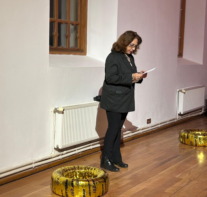 Tədbirdə çıxış edən Əməkdar rəssam Səbinə Şıxlinskaya vurğulayıb ki, sərgidə yer alan “MOBBILE” Bakıda ilk dəfə təqdim olunan hərəkətli instalyasiyadır.