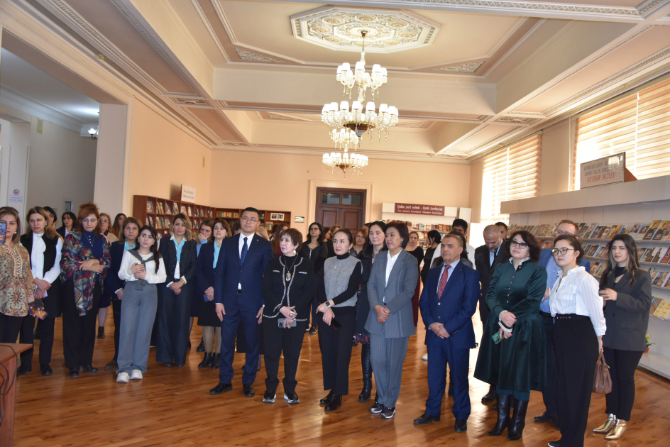 Kitabxanadan AZƏRTAC-a bildirilib ki, əvvəlcə Ümummilli Lider Heydər Əliyevin əziz xatirəsi bir dəqiqəlik sükutla yad edilib.