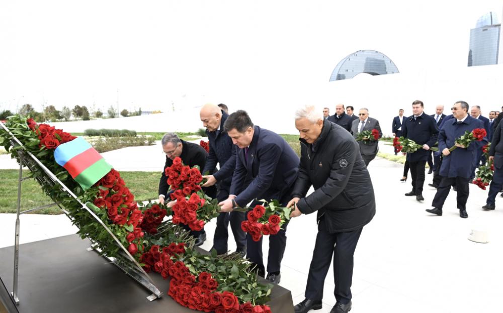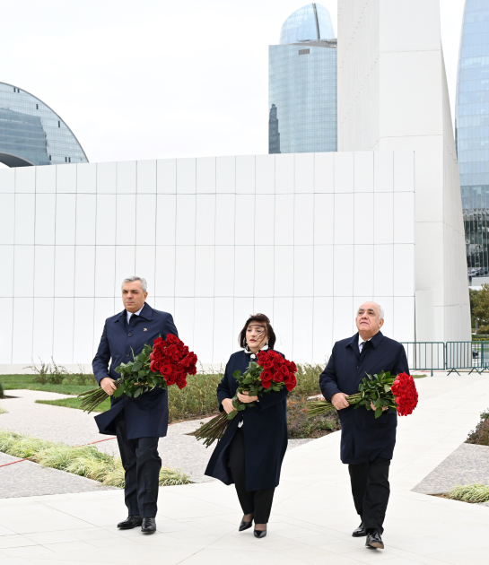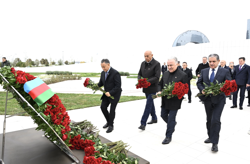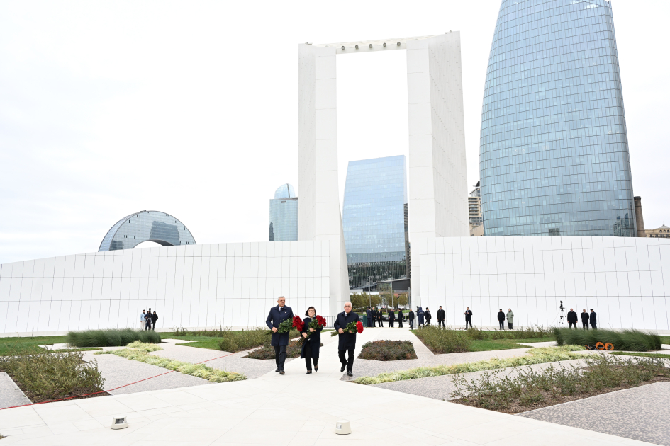 AZƏRTAC xəbər verir ki, dövlət və hökumət rəsmiləri xatirə daşının önünə gül dəstələri düzərək şəhidlərin əziz xatirəsini ehtiramla anıblar.