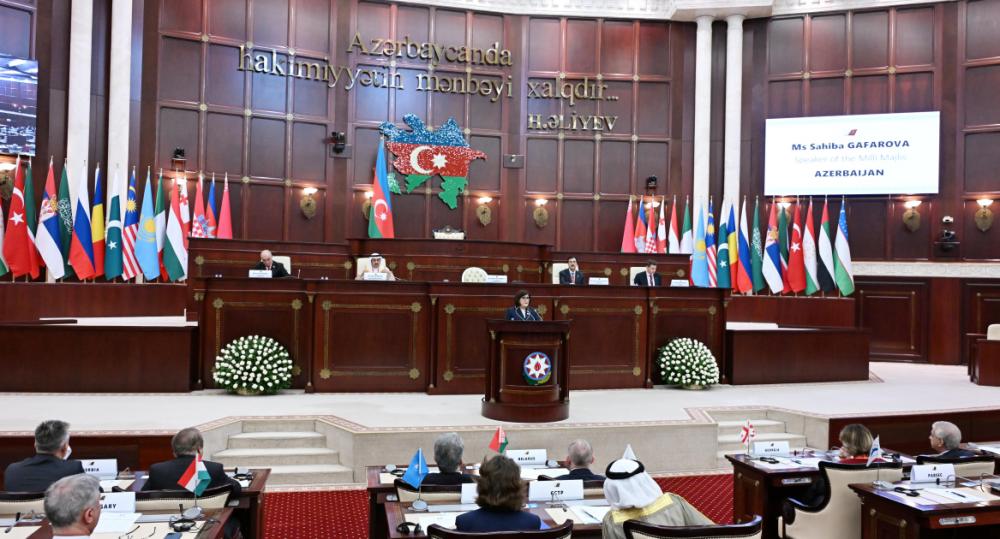 Tədbirdə çıxış edən spiker Sahibə Qafarova bildirib ki, “Konstitusiya müasir dünyada dövlətlərin müstəqilliyinin və suverenliyinin təməli kimi” mövzusuna həsr edilən beynəlxalq parlament konfransının Azərbaycanda keçirilməsinin rəmzi mənası var. Bu il biz müstəqil dövlətimizin ilk Konstitusiyasının qəbul olunmasının 30 illiyini qeyd edirik. Bununla əlaqədar 2025-ci il Azərbaycanda “Konstitusiya və Suverenlik İli” elan olunub. Onun sözlərinə görə, Azərbaycan dövlətçiliyinin tarixi ağır sınaqlar və parlaq qələbələr tarixidir: “1991-ci ildə müstəqilliyini bərpa etdikdən sonra Azərbaycan siyasi, iqtisadi, hərbi və digər sahələrdə mürəkkəb vəziyyətə düşmüşdü. Ölkəmizə qarşı silahlı təcavüz və daxili böhran dövlət müstəqilliyinin itirilməsi təhlükəsini törətmişdi.