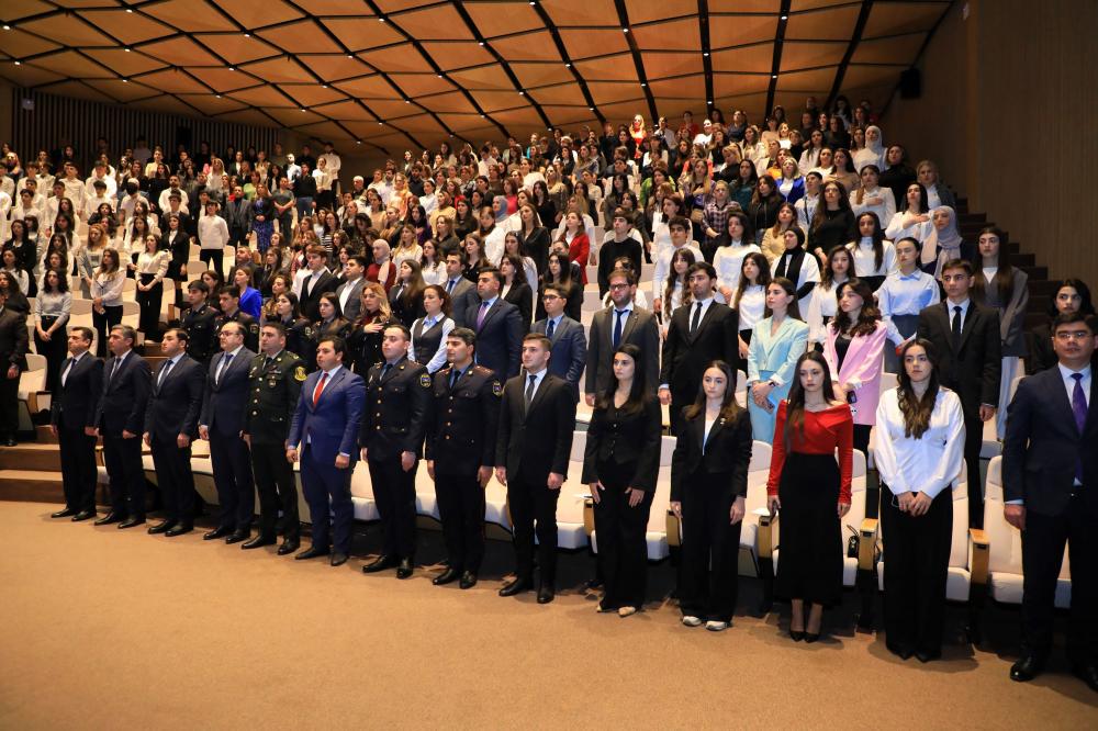 Azərbaycan Respublikasının Dövlət Himninin səsləndirilməsi ilə başlayan tədbirdə Ulu Öndər Heydər Əliyevin, eləcə də Vətənimizin azadlığı və ərazi bütövlüyü uğrunda canlarından keçmiş şəhidlərimizin əziz xatirələri bir dəqiqəlik sükutla yad edilib.