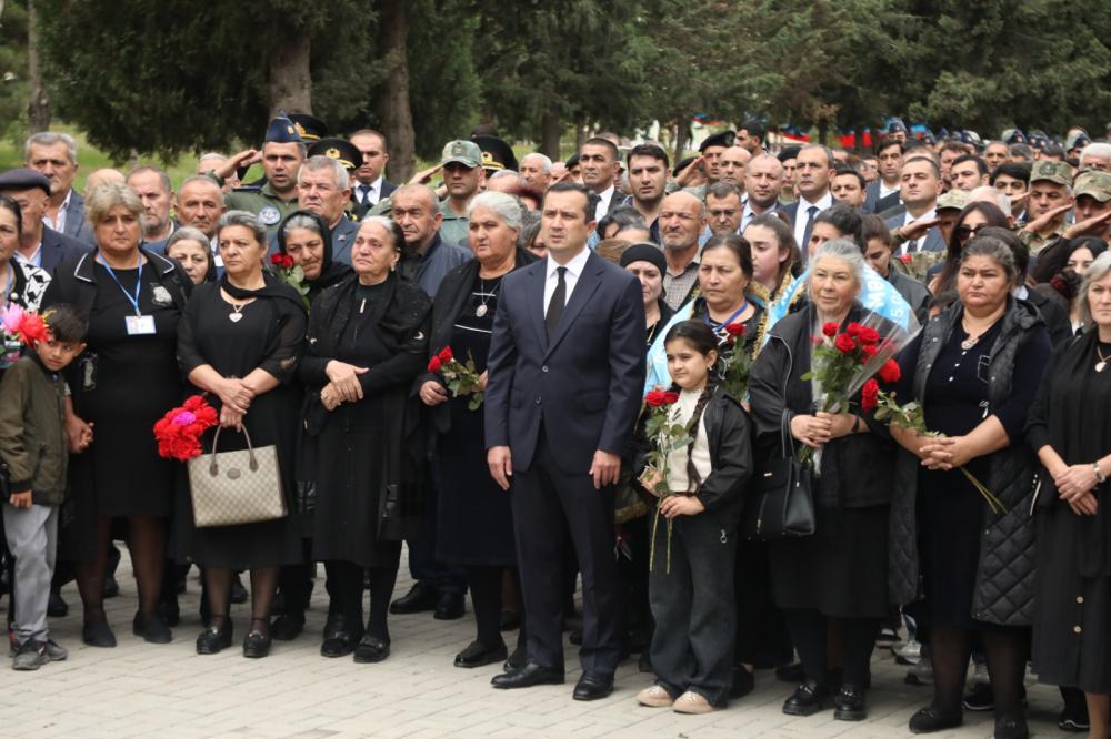 Saat 12:00-da isə rayon ərazisində nəqliyyatın və piyadaların hərəkəti dayandırılıb, avtomobillərdən səs siqnalları verildi. İnsanlar şəhid əsgər və zabitlərimizin ruhları qarşısında baş əyib, onların xatirəsinə dərin ehtiramlarını bir dəqiqəlik sükutla ifadə etdilər.